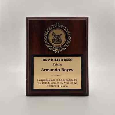 Central Hockey League (CHL) Mascot of the Year plaque, Armando Reyes, 2010-2011