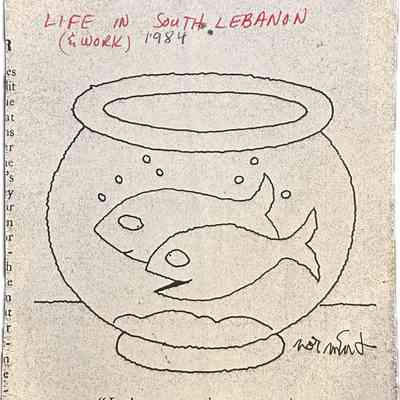 This is a newspaper clipping kept by donor Marcia Stone during her time living and working in southern Lebanon in 1982-1984 supporting the released prisoners of Ansar prison. The clipping features a single-panel cartoon of two fish circling inside a fishbowl, accompanied by the caption, “Let’s go around one more time and then call it a day.” Stone annotated the clipping in red ink with the words “LIFE IN SOUTH LEBANON (& WORK) 1984,” suggesting she saw in the cartoon a metaphor for the circular, exhausting routine of humanitarian work in a region under occupation. It could also reflect the sentiments of those that she worked with and served, Palestinians imprisoned by the Israeli occupation forces in Ansar prison.