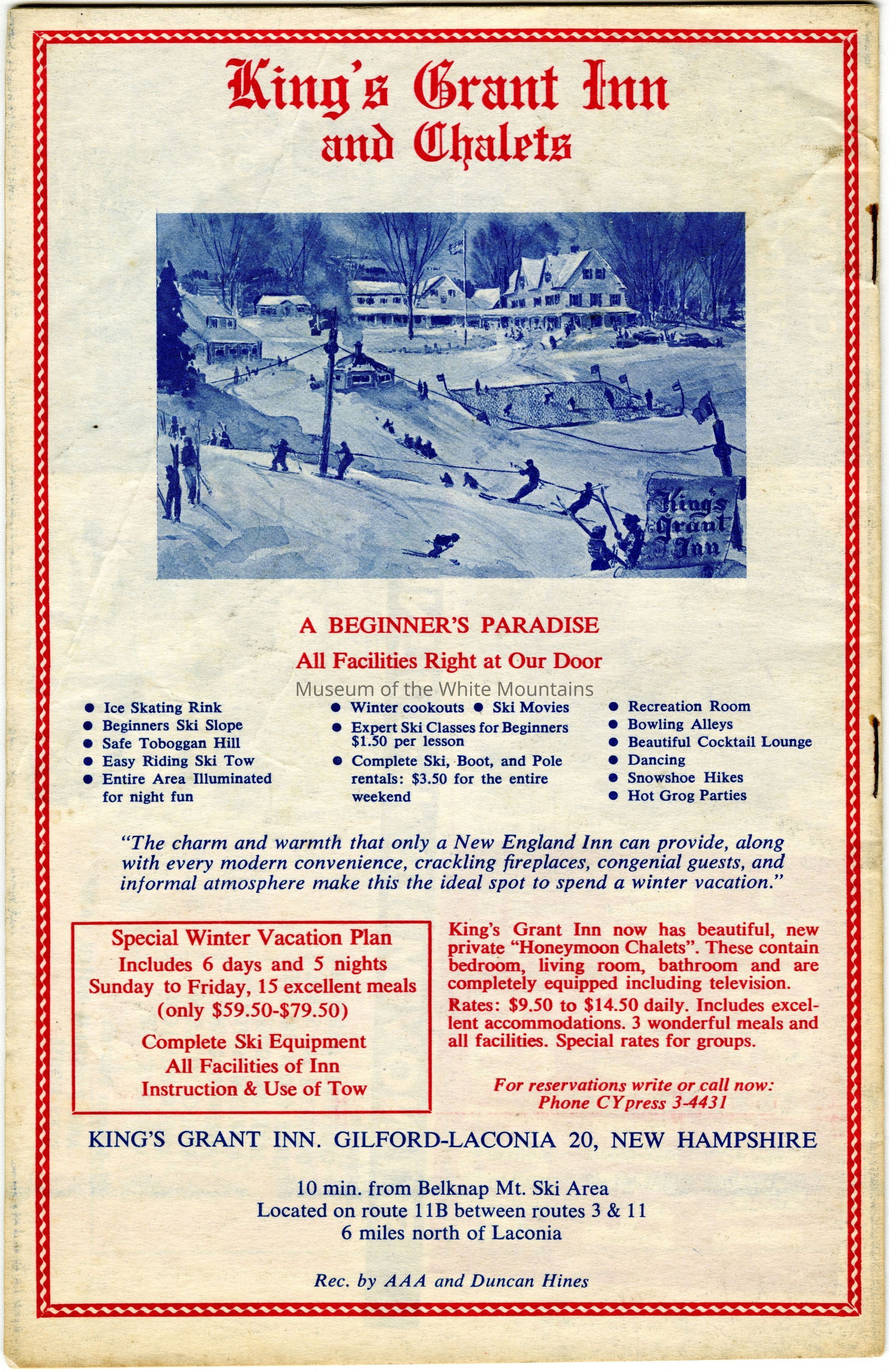 A paperback booklet with a skier on the cover that contains information of possible interest to skiers visiting the White Mountains.Acquisition