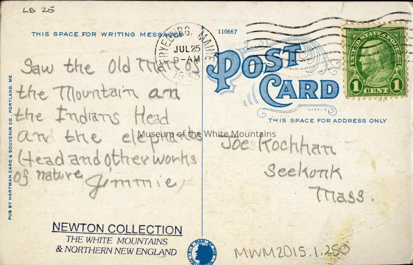 Postal Services, Mountains, Crawford Notch (New Hampshire : valley), Elephant Head (Carroll county, New Hampshire : rock)