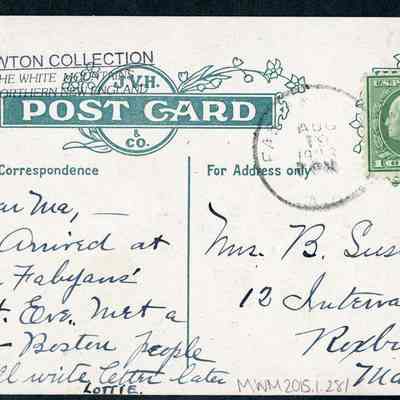 Back Description: There is an address and letter written on the back as well as a George Washington stamp in the upper right corner.