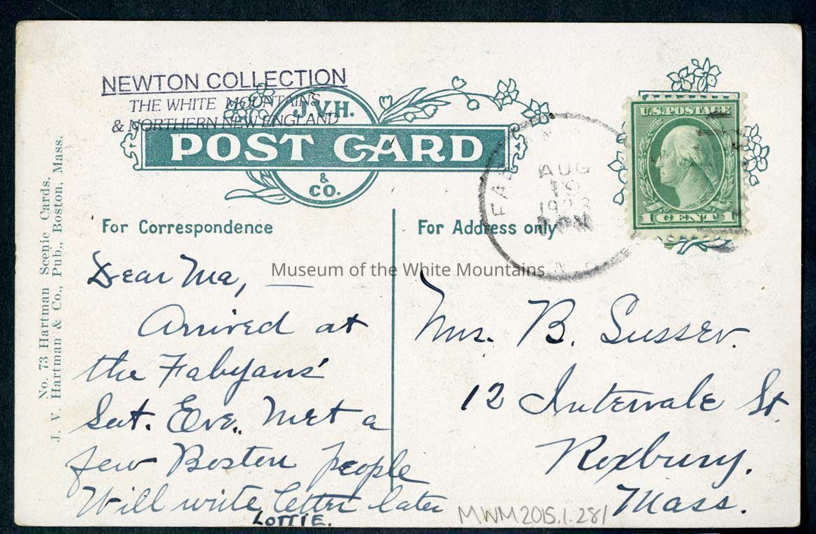 Arrived at Fabyans' Sat. Eve. met a few Boston people. Will write letter later