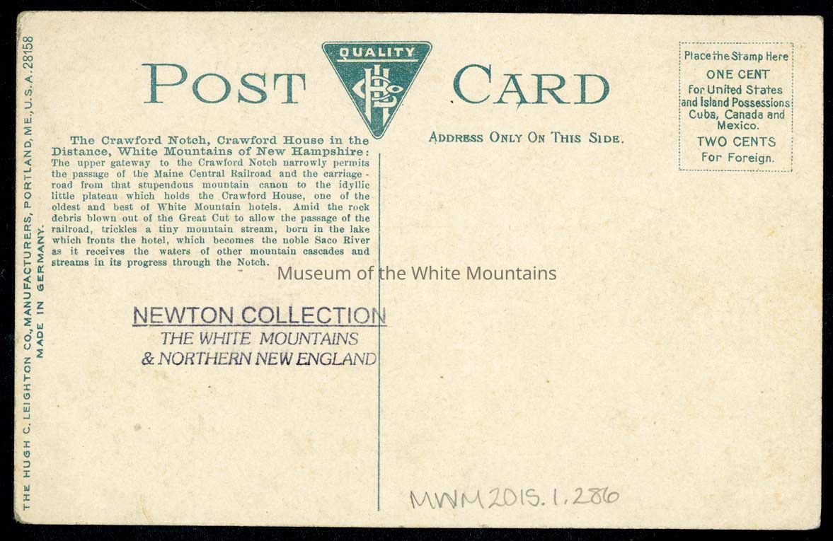 Postal Services, Mountains, Crawford Notch (New Hampshire : valley), Crawford House (Coos county, New Hampshire : inhabited place), Tracks