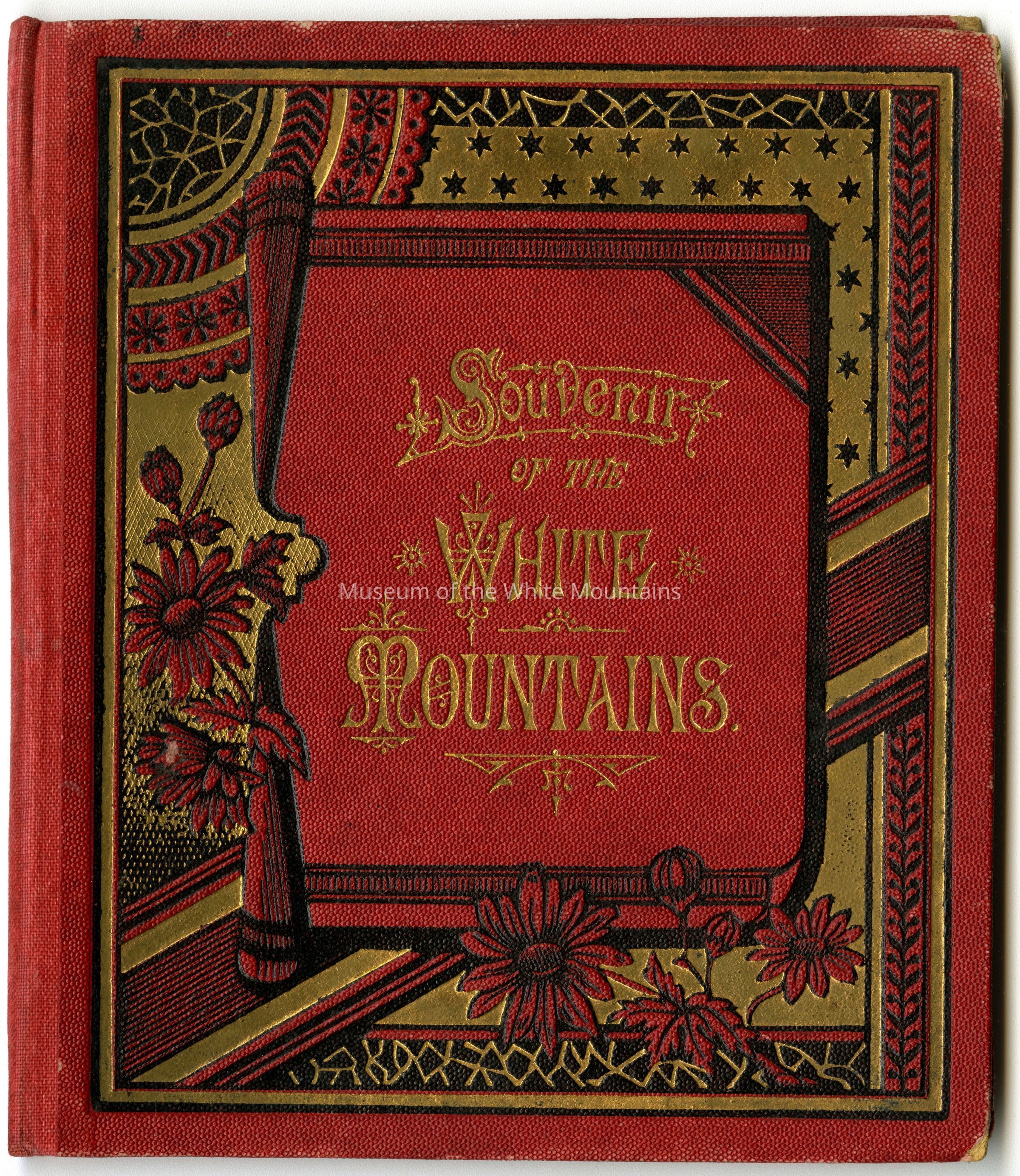 Small hard-cover red book of artistic depictions of places / scenes in the White Mountains.