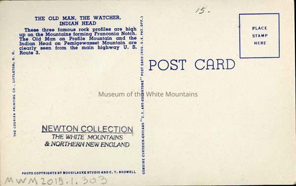 Postal Services, Old Man of the Mountain (Grafton county, New Hampshire : peak), Franconia Notch (Grafton county, New Hampshire : valley), Indian Head (Grafton county, New Hampshire : rock), Profile Mountain (Grafton county, New Hampshire : peak), Pemigewasset, Mount (Grafton county, New Hampshire : peak)