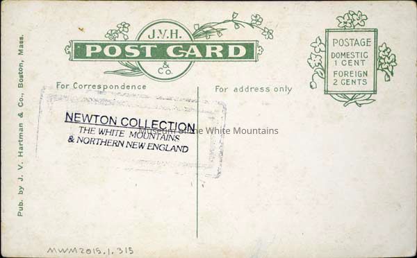 Two hikers climb up a steep rocky mountain. There are some small clouds in the background, as well as a small patch of grass. This postcard is published by J. V. Hartman and Co., Boston, Mass. There is no writing on the back of the card.Acquisition
