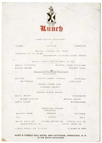 Hunt's Forest Hill Hotel and Cottages Lunch Menu, 1907Entry/Object ID