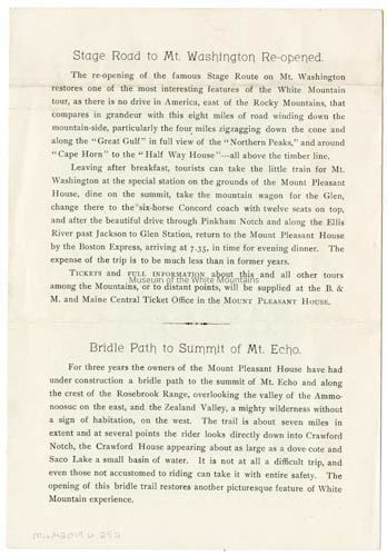 Mount Pleasant House (Carroll county, New Hampshire : inhabited place), Mount Washington Carriage Road (Coos county, New Hampshire : road)Archive Details