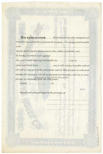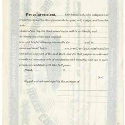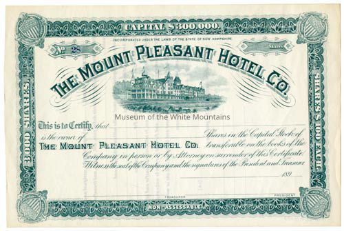 Capital stock share in the Mount Pleasant Hotel Company. Never assigned.