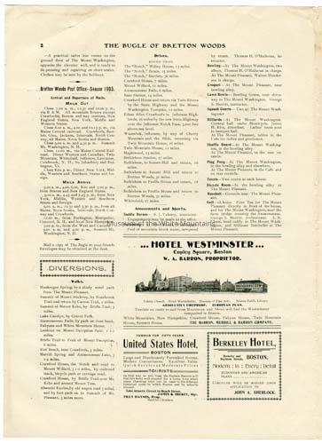 Mount Washington Hotel (Coos county, New Hampshire : inhabited place), Mount Pleasant House (Carroll county, New Hampshire : inhabited place), Balsams Hotel (Coos county, New Hampshire : inhabited place), Fabyan House (Coos county, New Hampshire : inhabited place), Summit House (Coos county, New Hampshire : inhabited place), Crawford House (Coos county, New Hampshire : inhabited place), Twin Mountain House (Coos county, New Hampshire : inhabited place), Maplewood Hotel (Grafton county, New Hampshire : inhabited place)