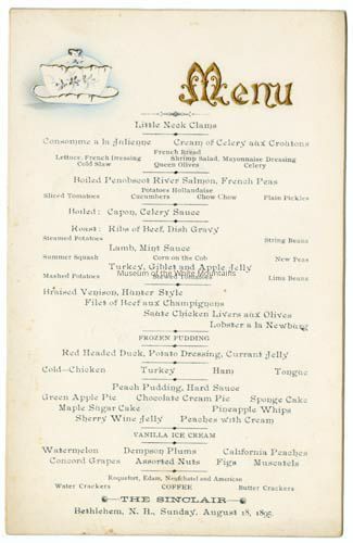 Menu for The Sinclair, dated Sunday August 18, 1895.