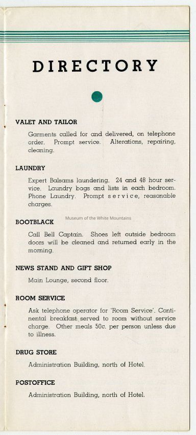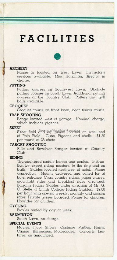 The Balsams Schedule of Facilities, Recreation, and Entertainment.