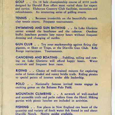 Sports, Advertising, Canoes, Golf, Maps, Hotels, Horses, Dining rooms, Mountains