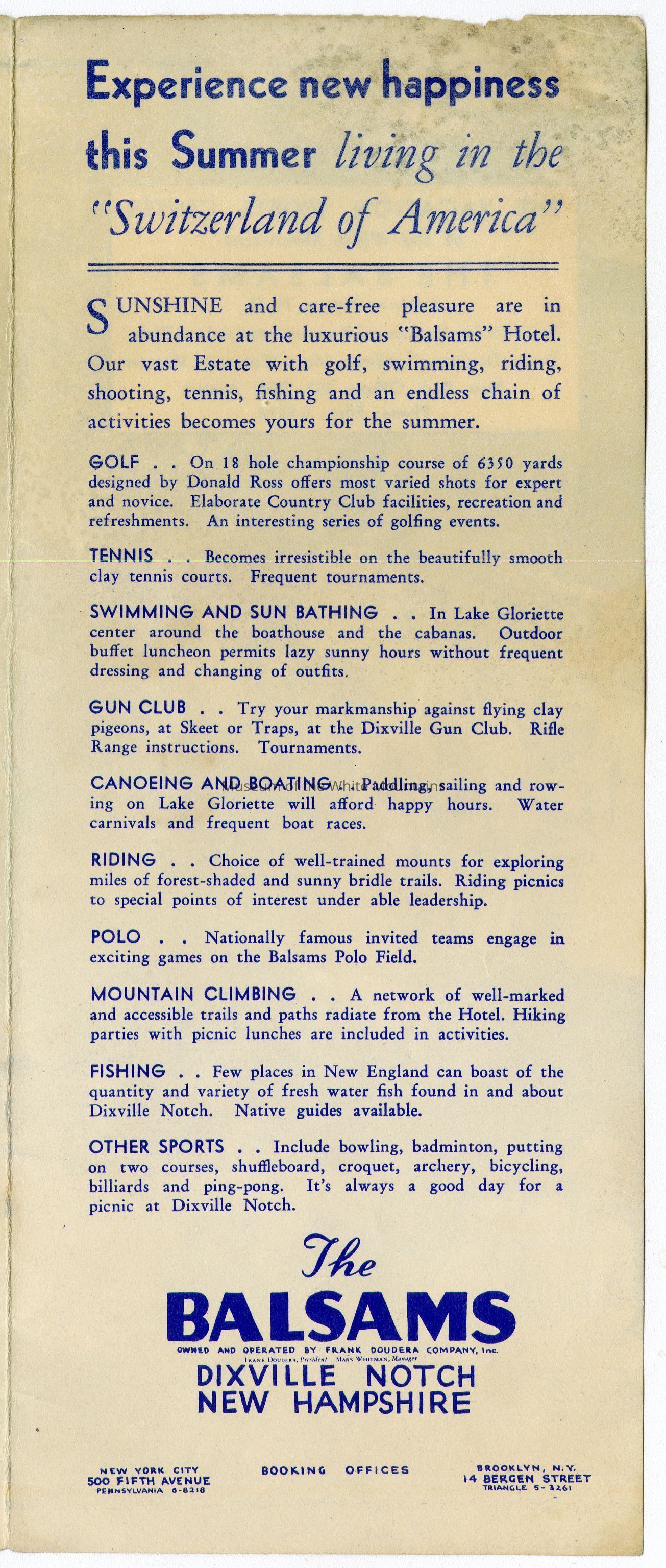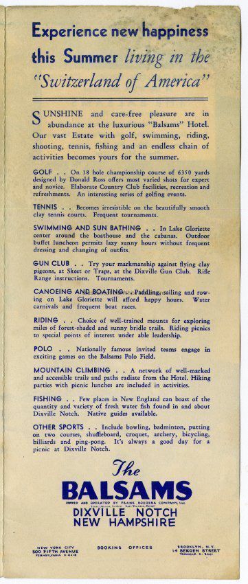 In the Mountains, The BALSAMS, Dixville Notch, N.H.