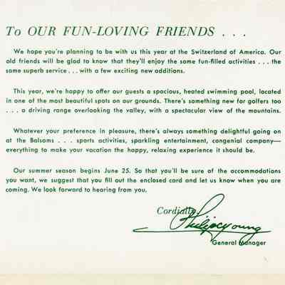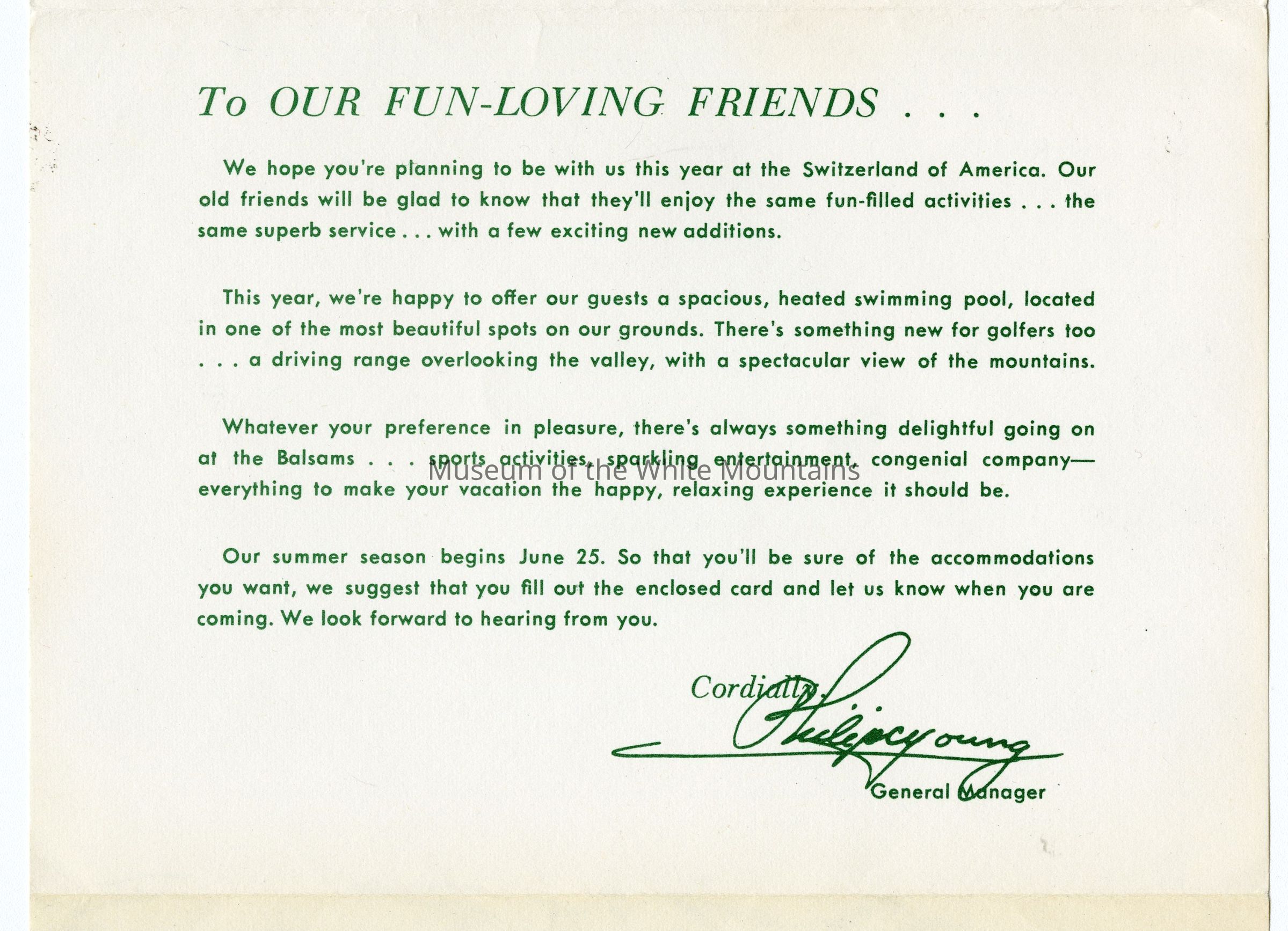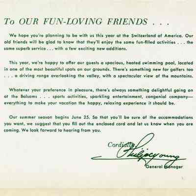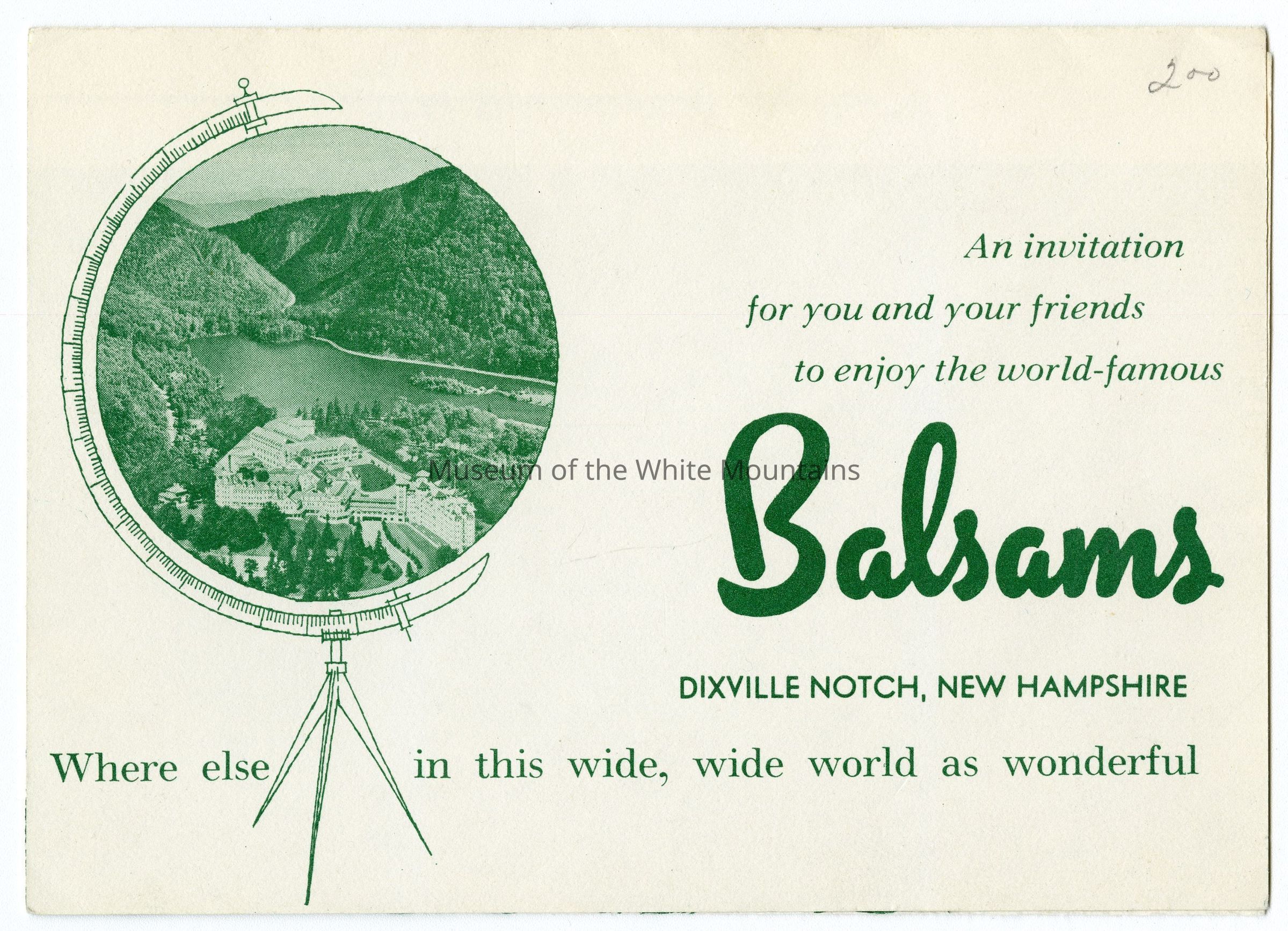 An invitation for you and your friends to enjoy the world-famous Balsams, Dixville Notch, N.H.Entry/Object ID
