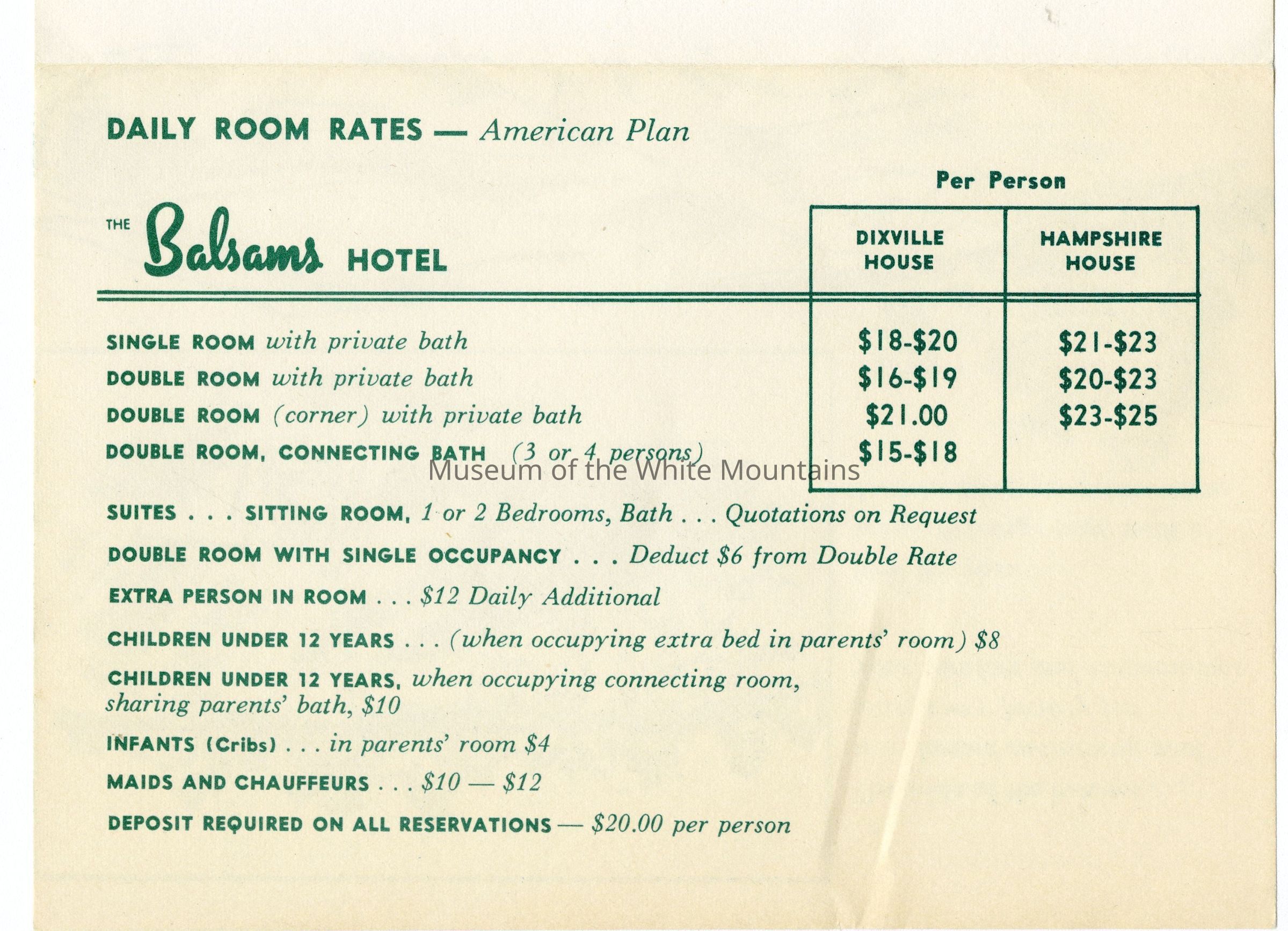 Balsams Hotel (Coos county, New Hampshire : inhabited place), Dixville Notch (Coos county, New Hampshire : inhabited place)Archive Details