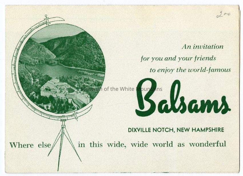 An invitation to enjoy the world-famous Balsams Hotel in Dixville Notch, New Hampshire.Acquisition