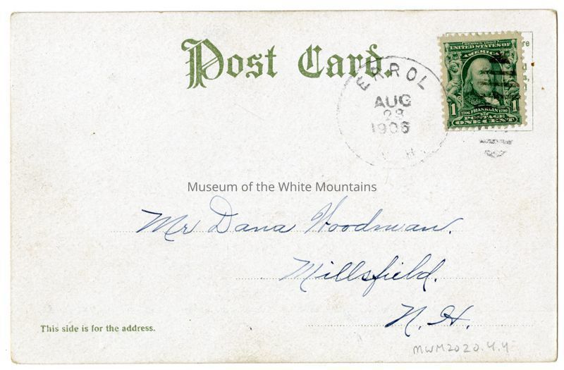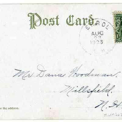 Back Description: Typical postcard back. Addressed to Mr. Dana Woodman, Millsfield, N.H.Acquisition