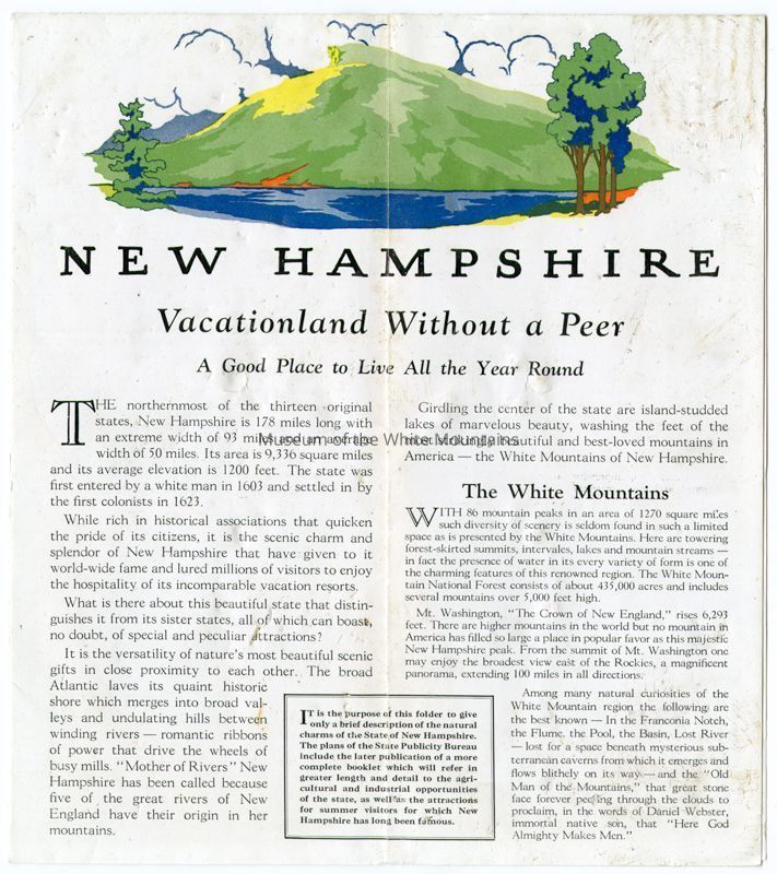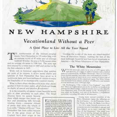 Old Man of the Lake (Sullivan county, New Hampshire : landmark), Old Man of the Mountain (Grafton county, New Hampshire : peak), Sunapee Lake (New Hampshire : lake), Dixville Notch (Coos county, New Hampshire : inhabited place), Gloriette, Lake (Coos county, New Hampshire : lake), Bethlehem (Grafton county, New Hampshire : inhabited place), Winnipesaukee, Lake (New Hampshire : lake), Lakes