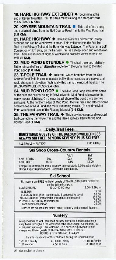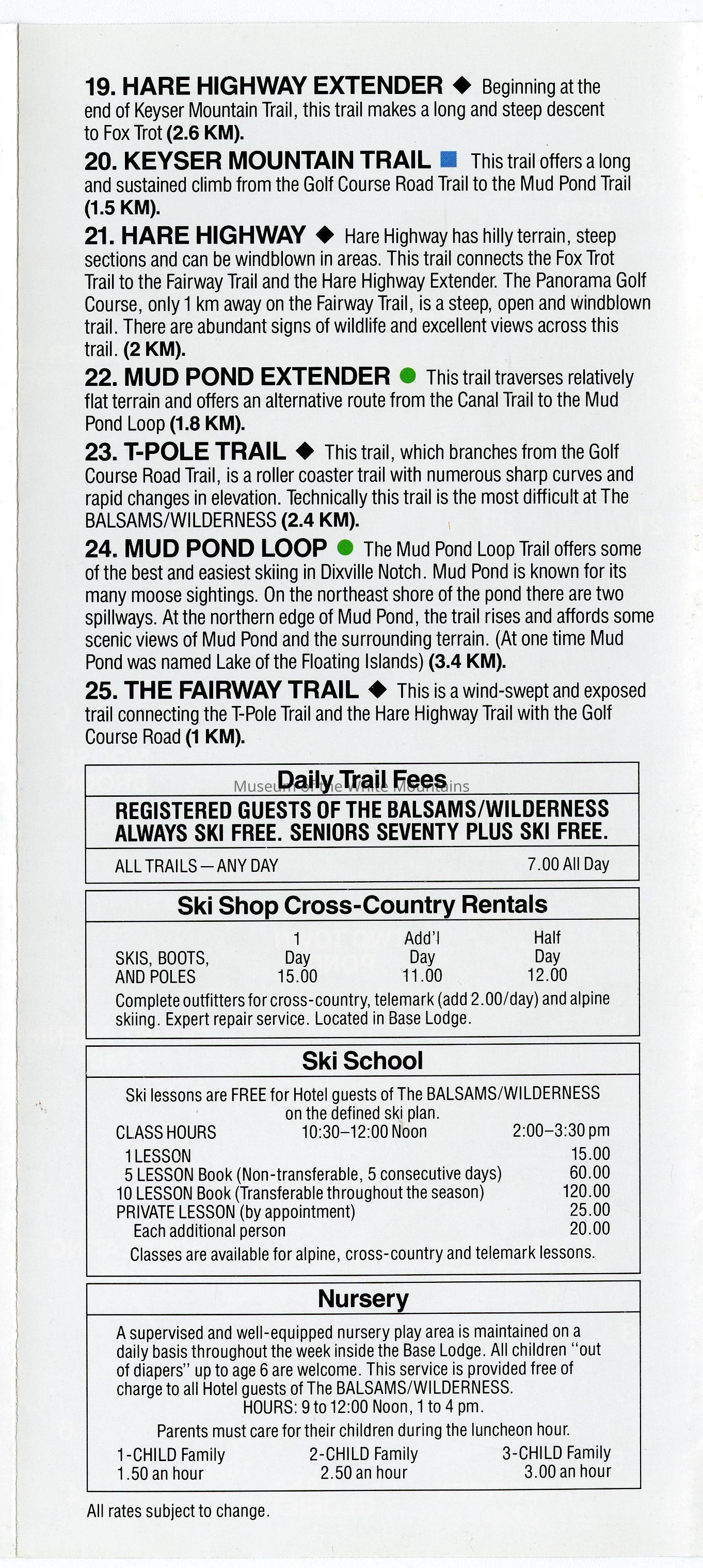 The Balsams/Wilderness Cross-Country Ski Area Trail Map and Rate ScheduleEntry/Object ID