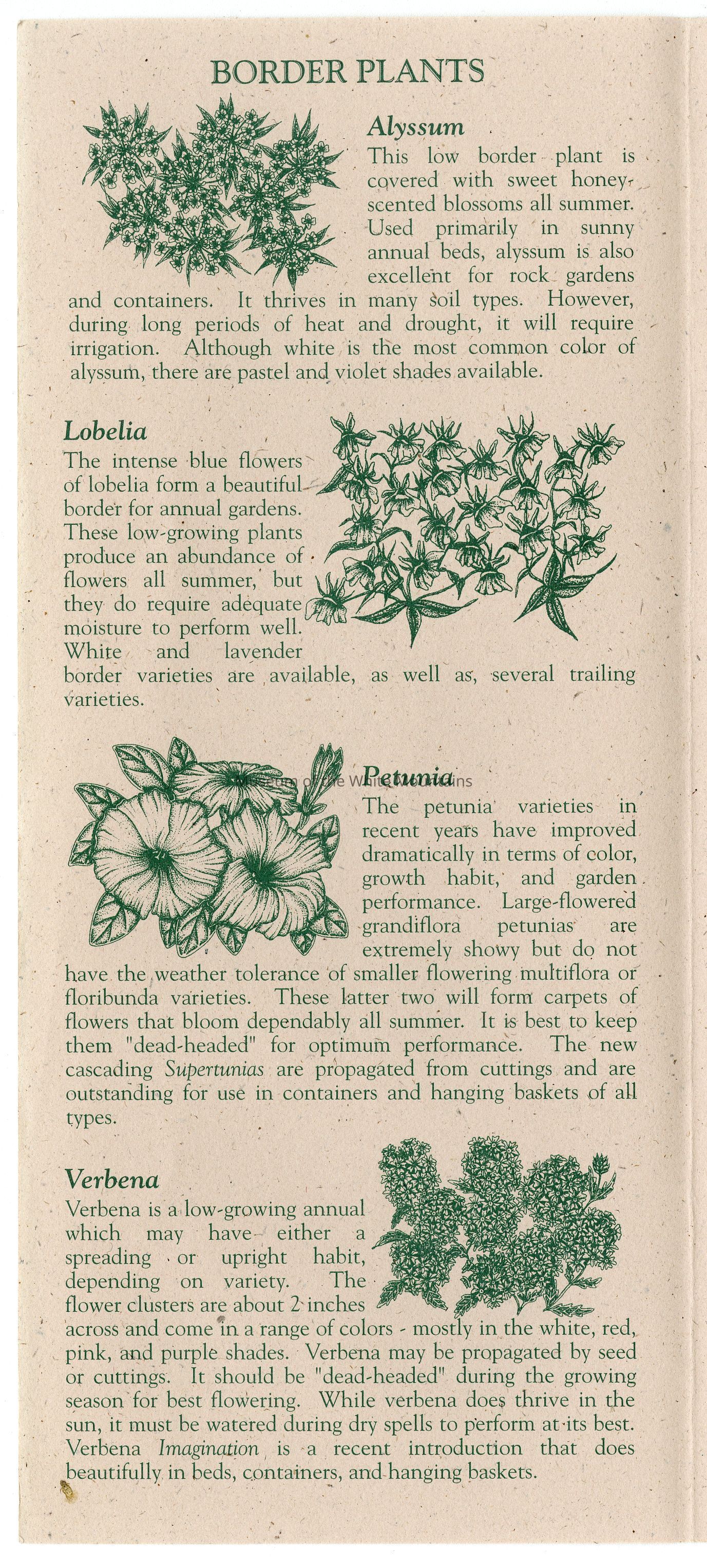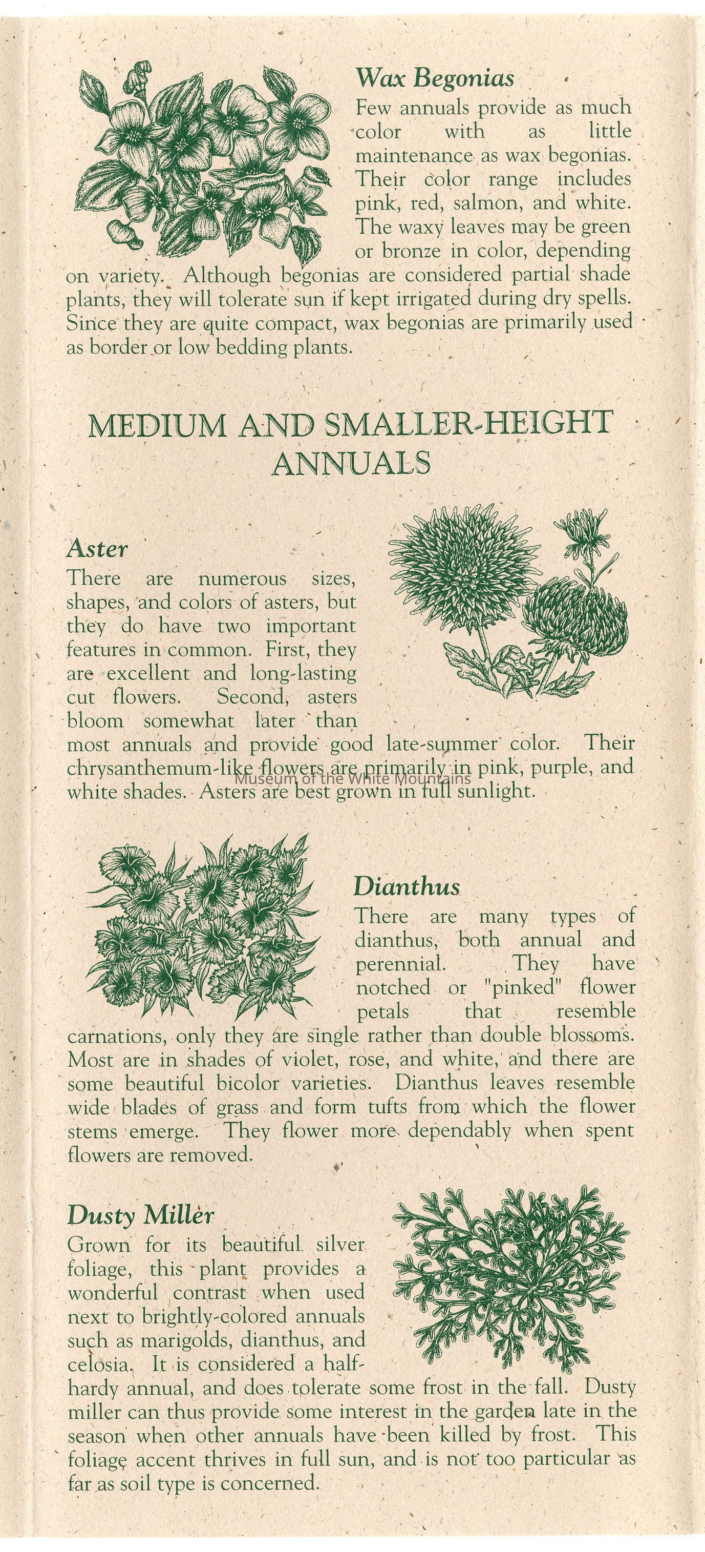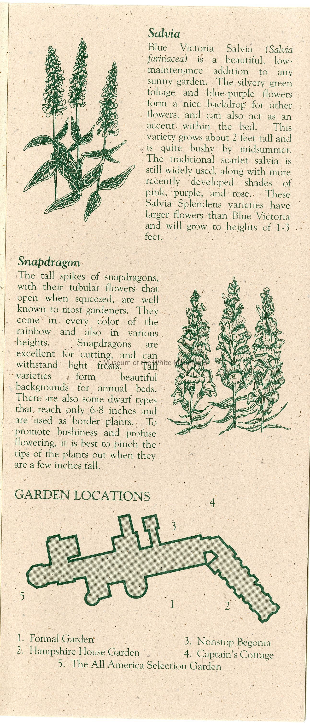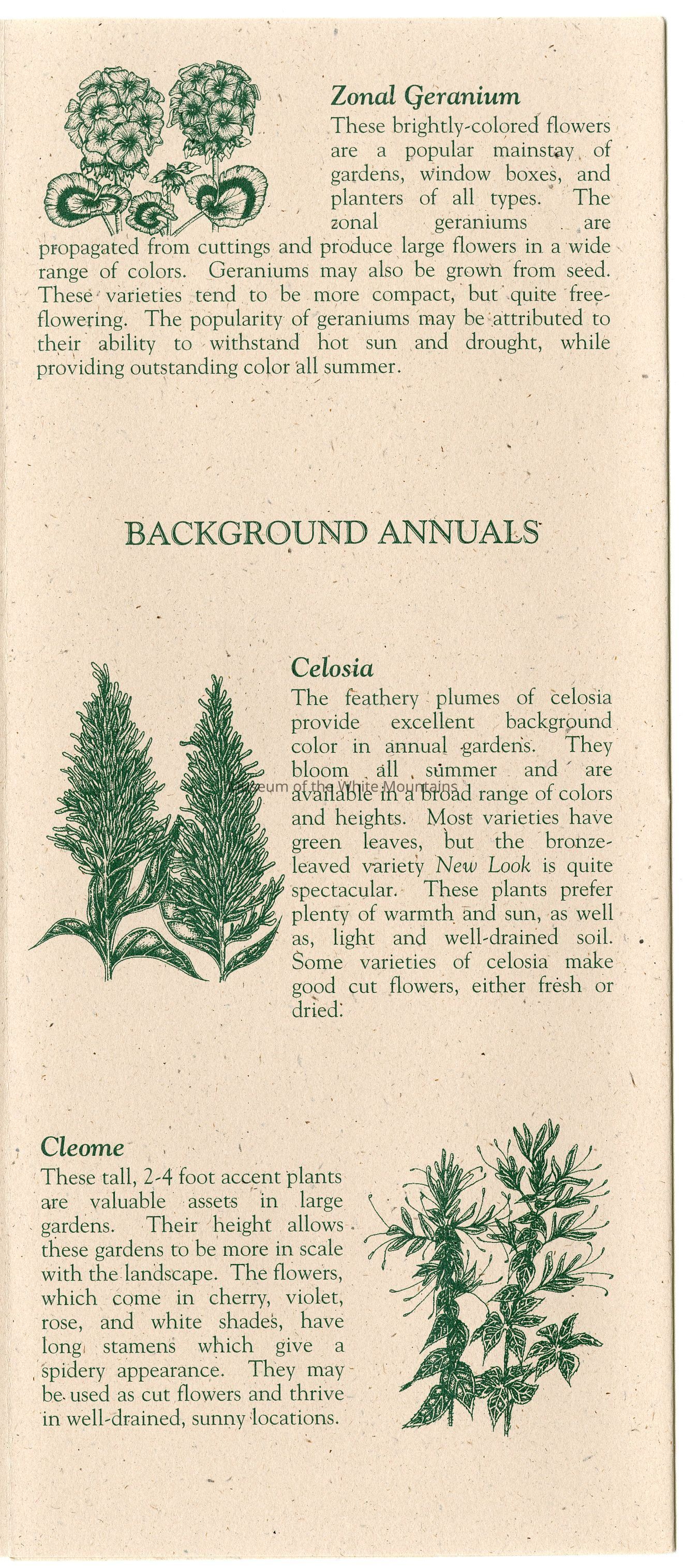 A Brochure with information about the gardens and plantings on the hotel property. Enclosed are sections with illustrations for border plants, medium and smaller height annuals, bakcground annuals, garden locations, and tips from the Balsams gardeners.Acquisition