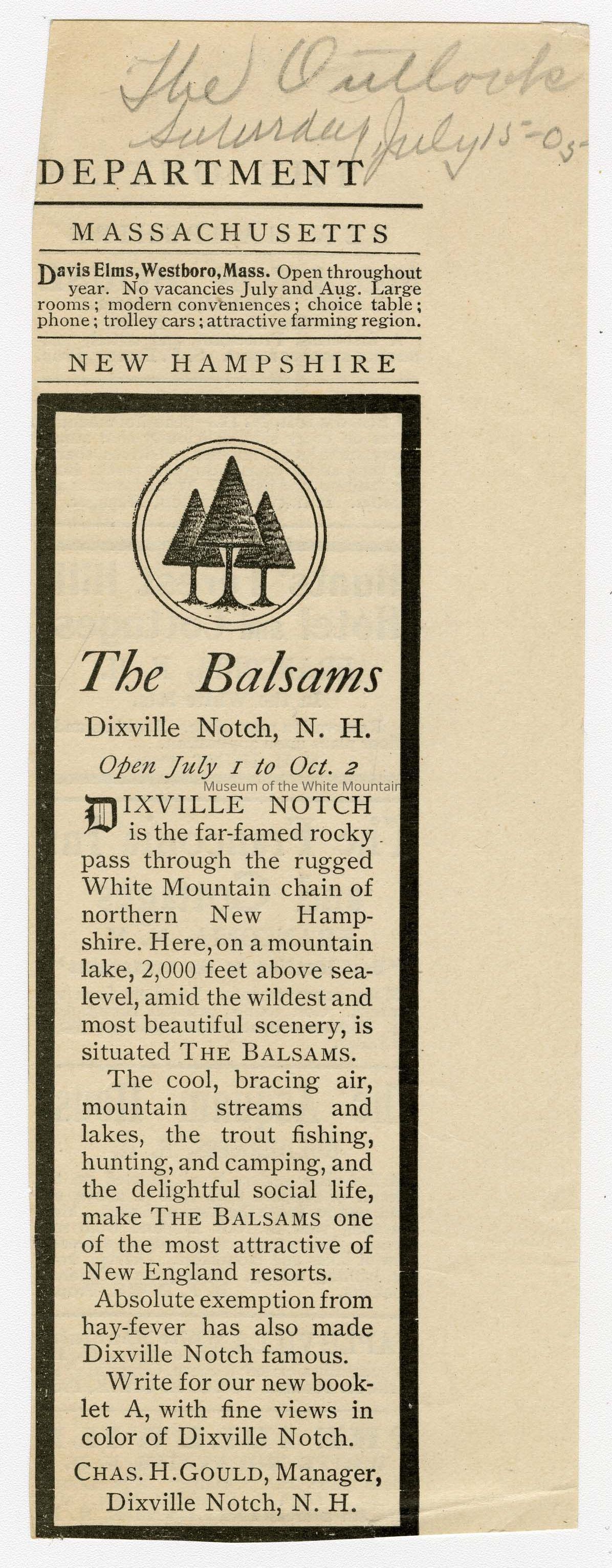 Balsams Hotel (Coos county, New Hampshire : inhabited place), Dixville Notch (Coos county, New Hampshire : inhabited place), Lake