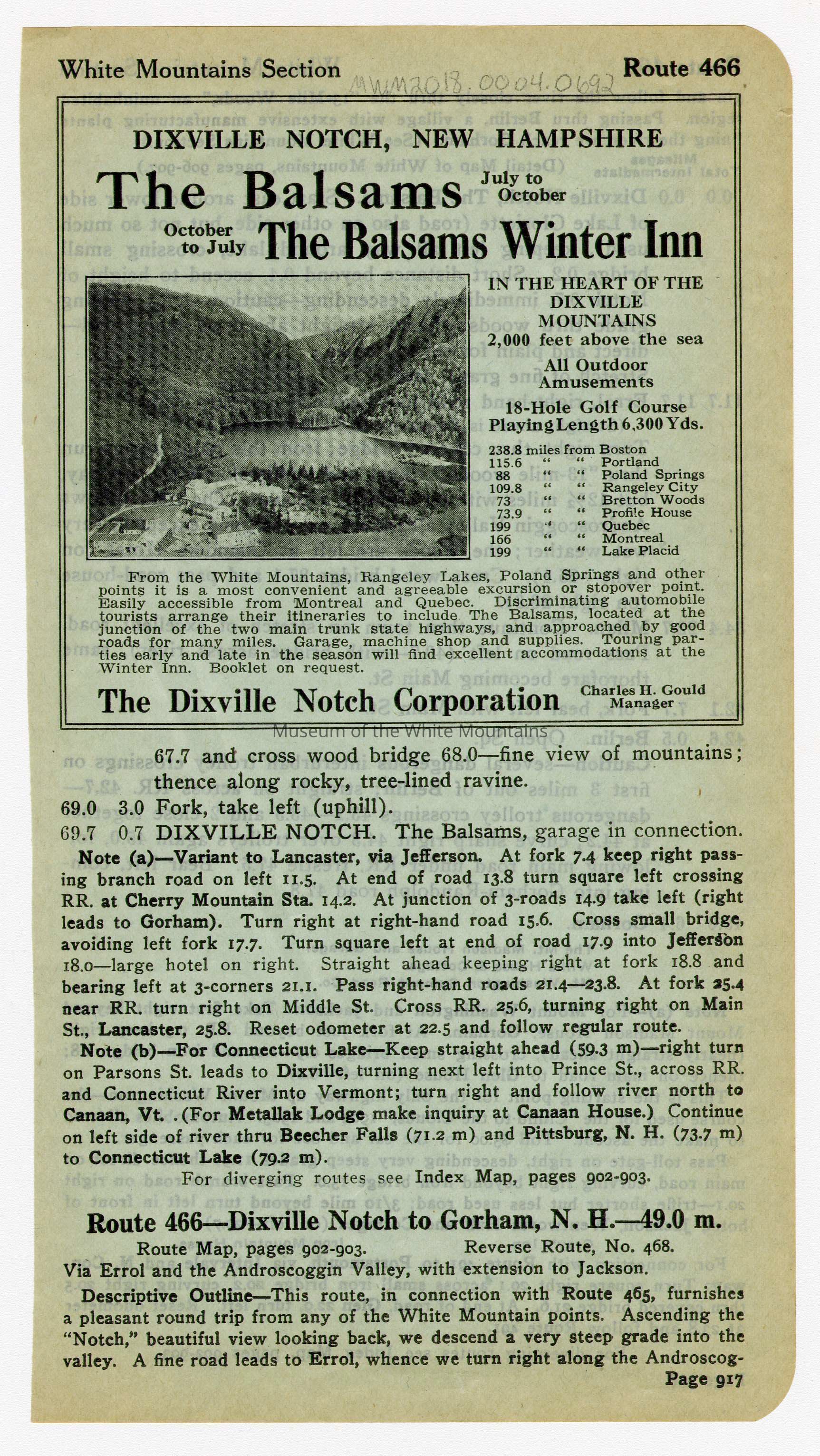 Balsams Hotel (Coos county, New Hampshire : inhabited place), Dixville Notch (Coos county, New Hampshire : inhabited place)