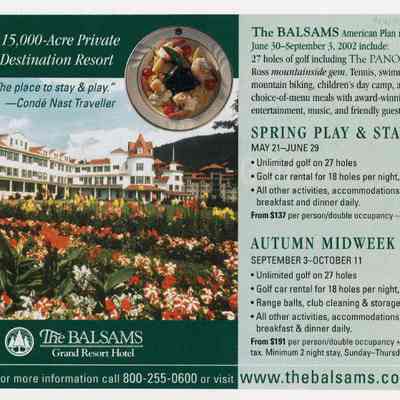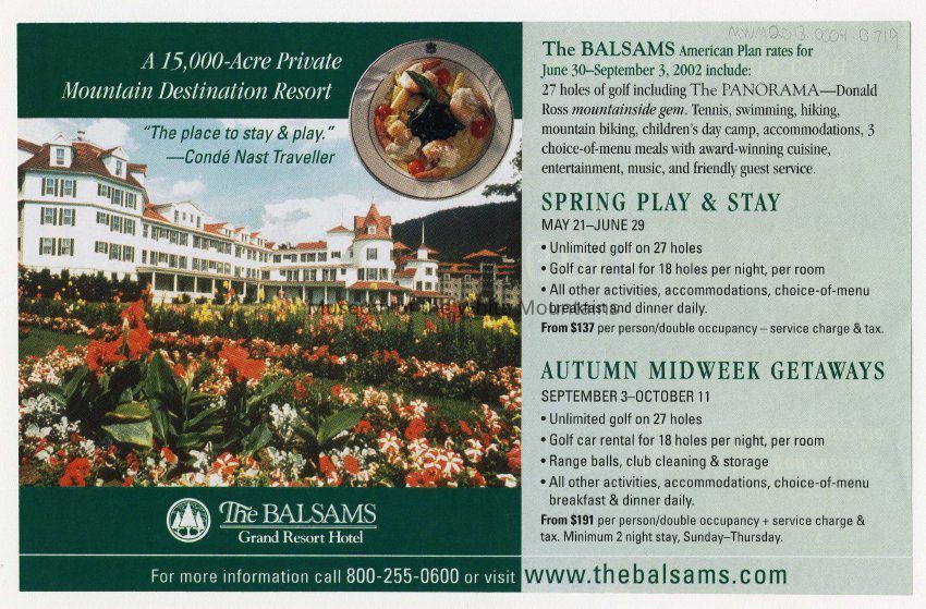 Balsams Hotel (Coos county, New Hampshire : inhabited place), Dixville Notch (Coos county, New Hampshire : inhabited place), Flyer, Seasonal