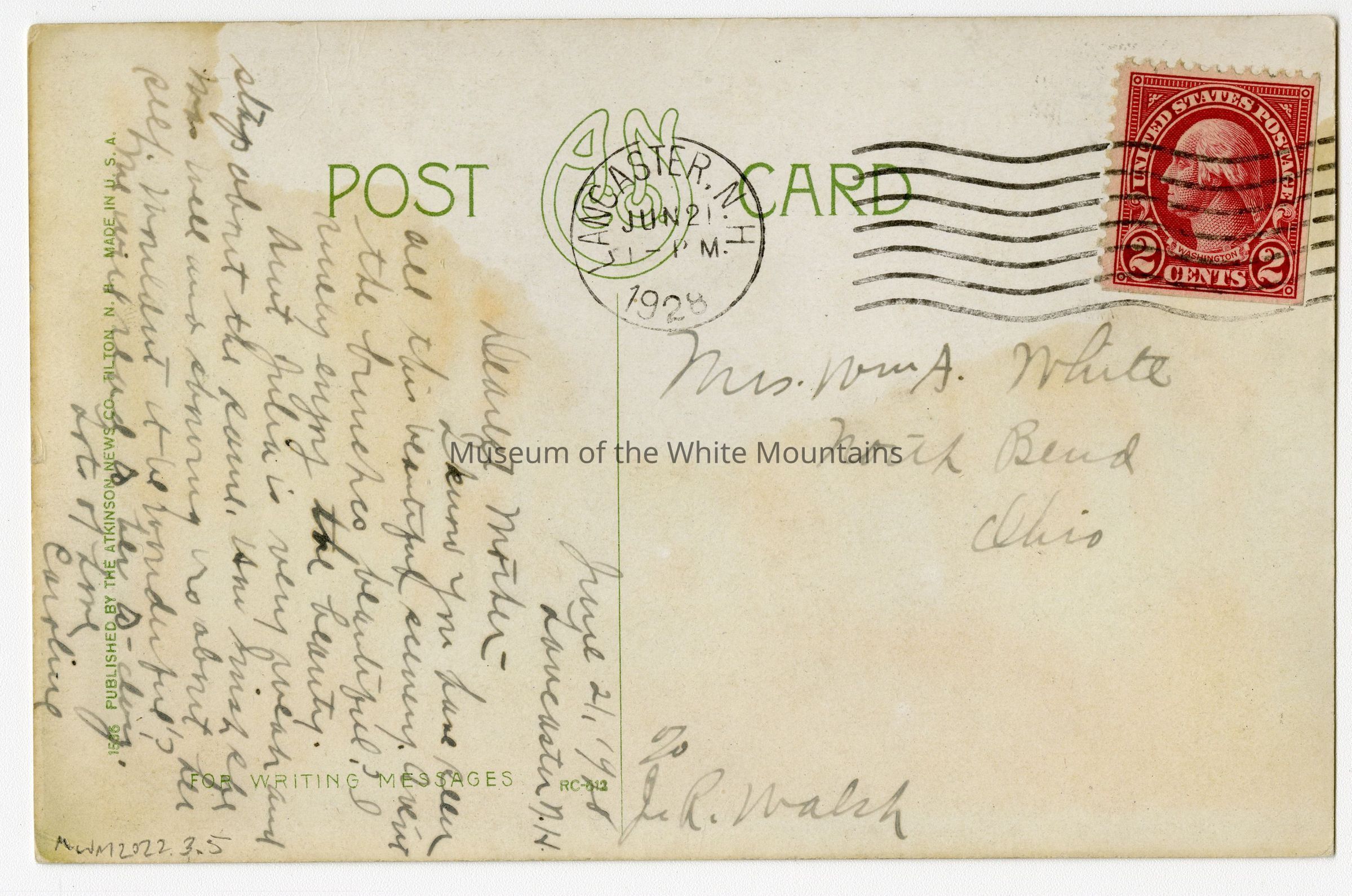 Two cent stamp with George Washington, postmarked Manchester June 21 1928"Collection