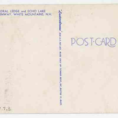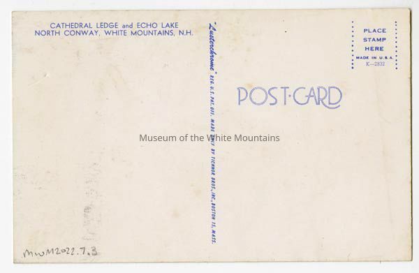 On the back there is a space for a note,the address, and postage. It also says, "Post Card, and the following is printed, Cathedral Ledge and Echo Lake, North Conway, White Mountains, N.H."