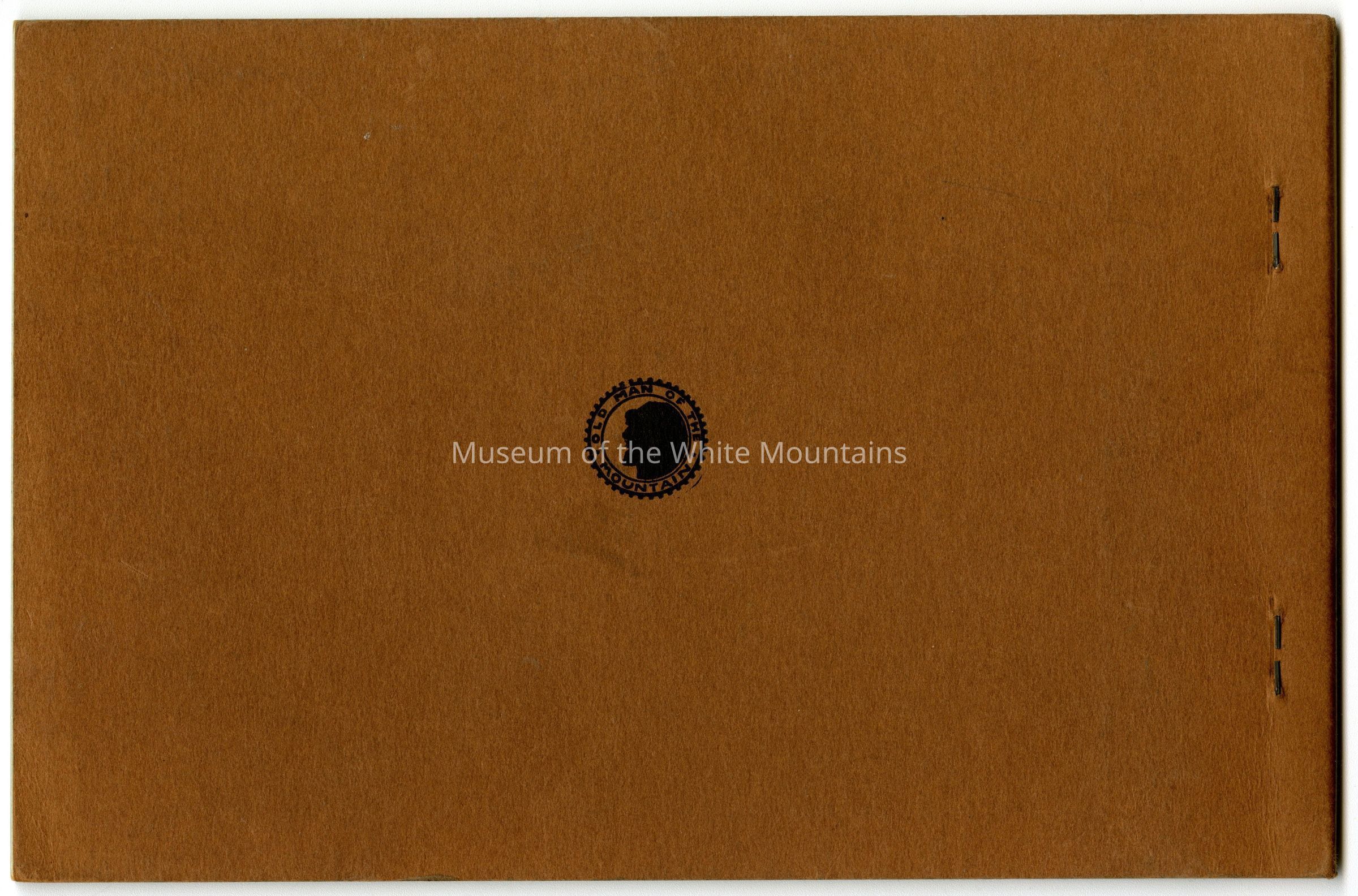 Small brown booklet with green details and a cut-through showing an image of the Old Man of the Mountains on the cover.