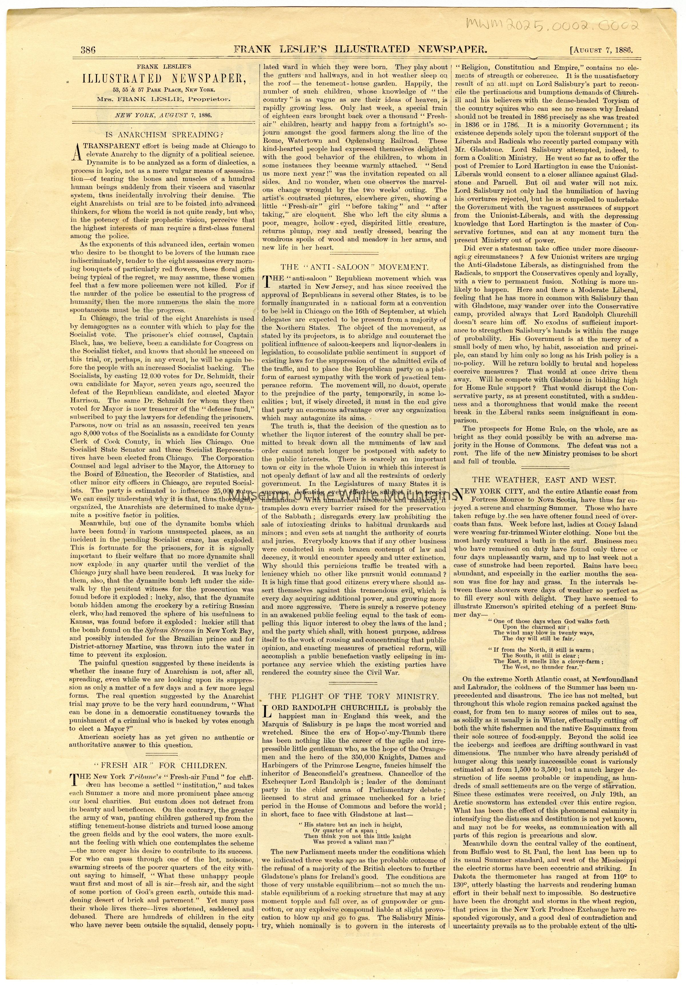 FRANK LESLIE'S ILLUSTRATED NEWSPAPER - No. 1611 - Vol. LXII - AUGUST 7, 1886Entry/Object ID