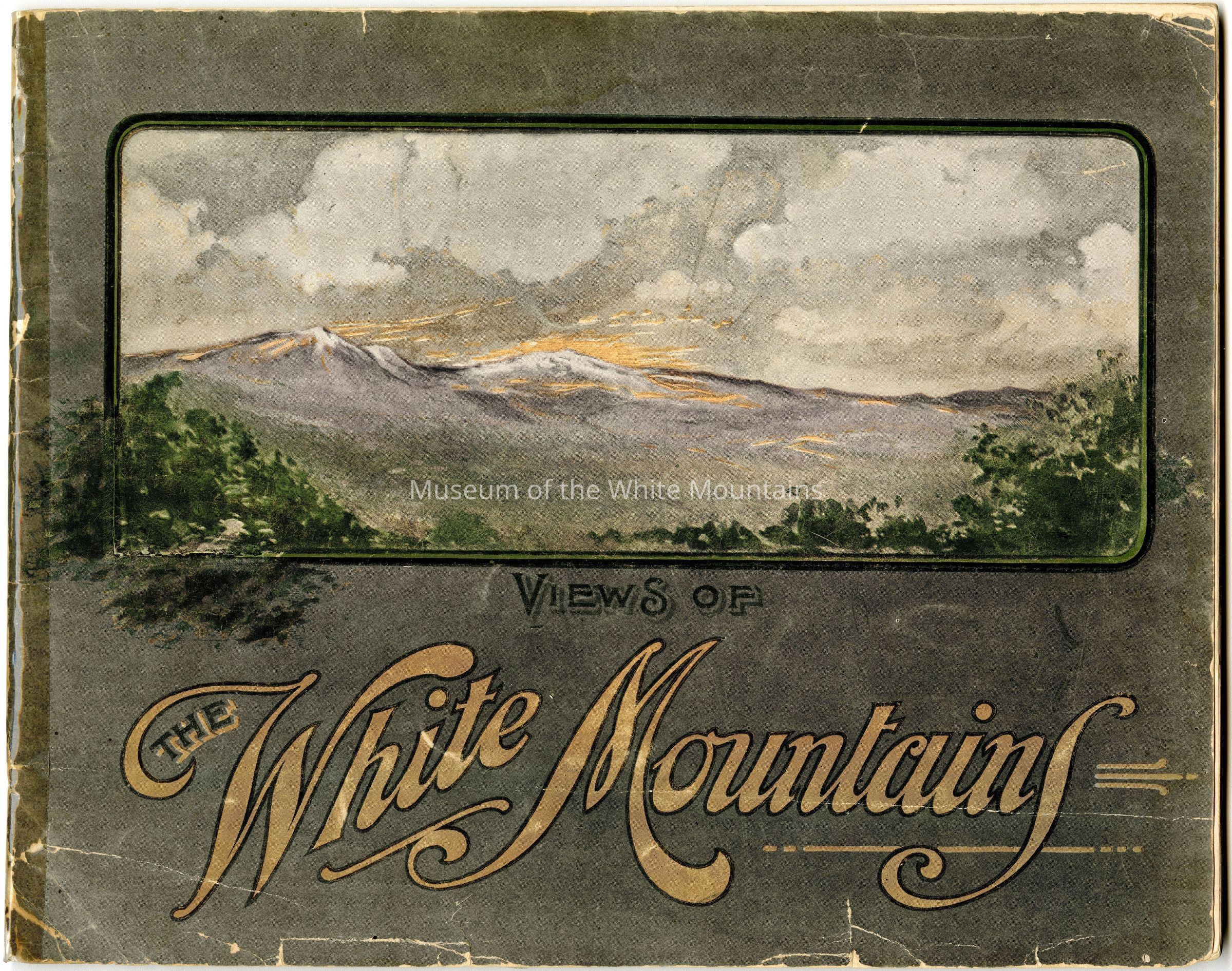 A booklet with a grey-blue cover containing text and images on the White Mountain region of New Hampshire.