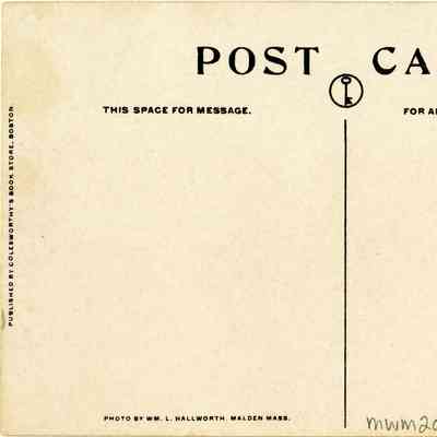 A landscape postcard featuring a colored on photograph of a dirt road leading up to the flue in Johnson New Hampshire.Subject Place
