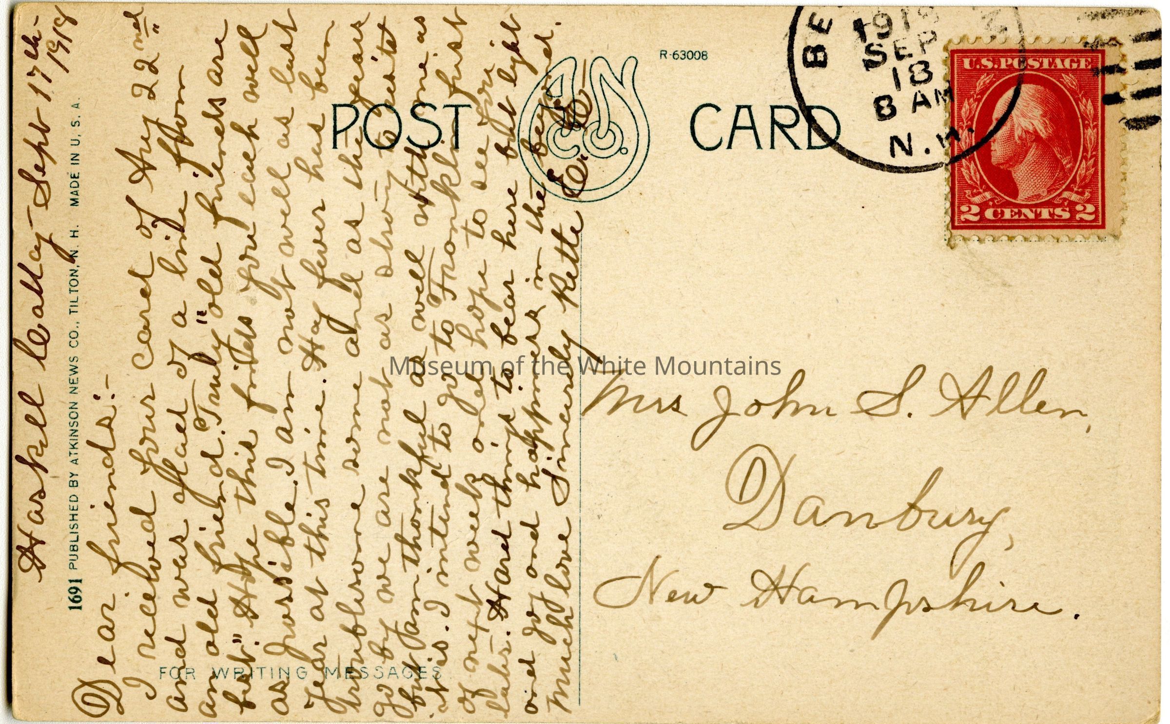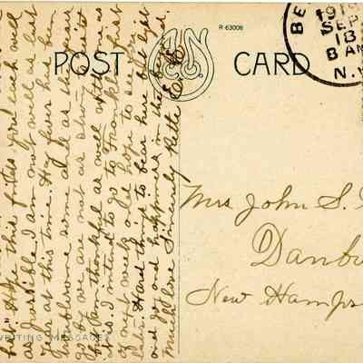 Transcription: Dear friends, I received your card of Aug. 22nd and was glad of a line from an old friend Truly "old friends are first" hope this finds you each well as possible. I am not well as last year at this tie. Hay fever has been troublesome and as the years go by.. we are not as strong to resist but am thankful as well with me as it is. I intend to go to Franklin, first of next week and hope to see you later. Hard thing to beat here but light and joy and happiness in the beyond. Much love, Sincerely Rette ESubject Place