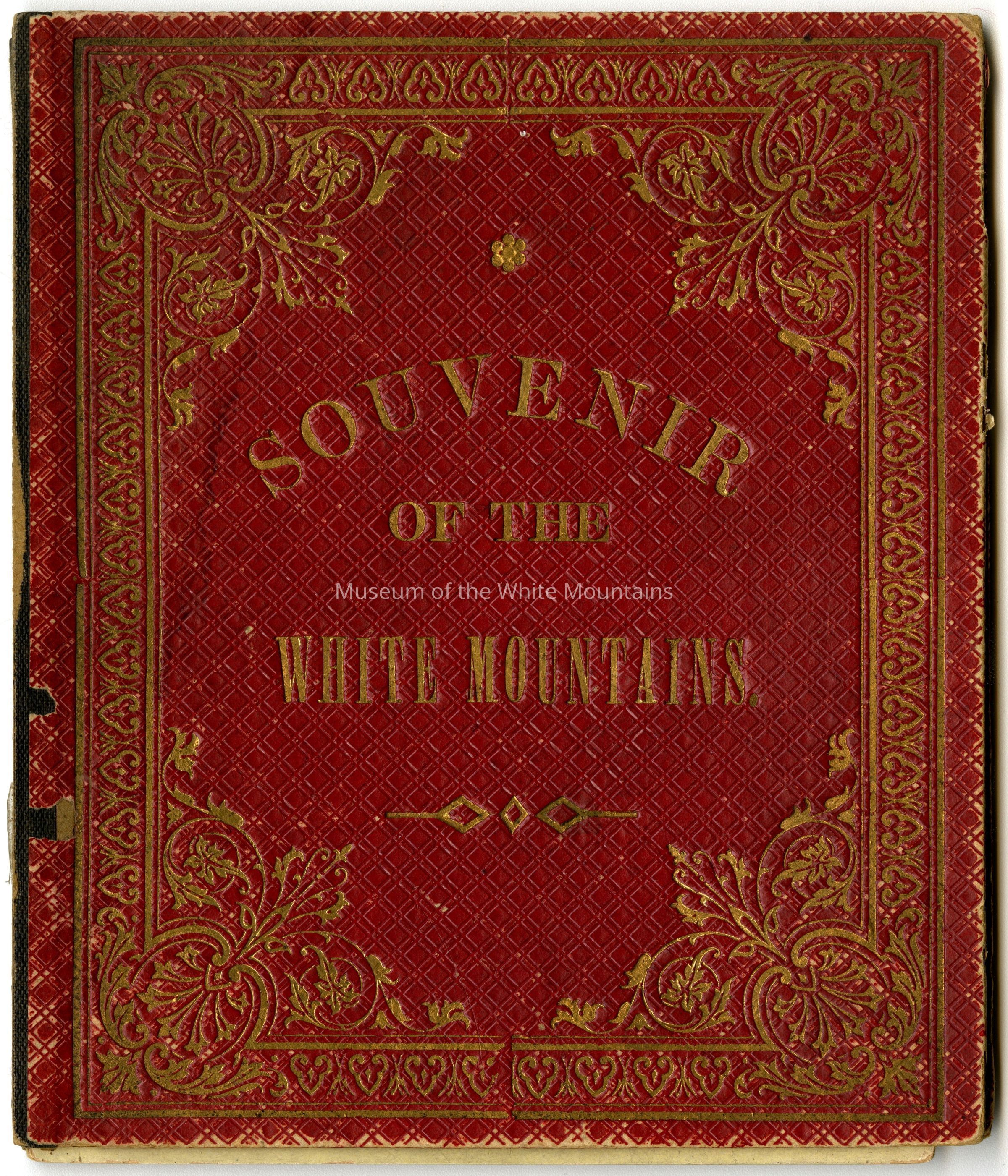 Small hard-covered red book of artistic depictions of places / scenes in the White Mountains.