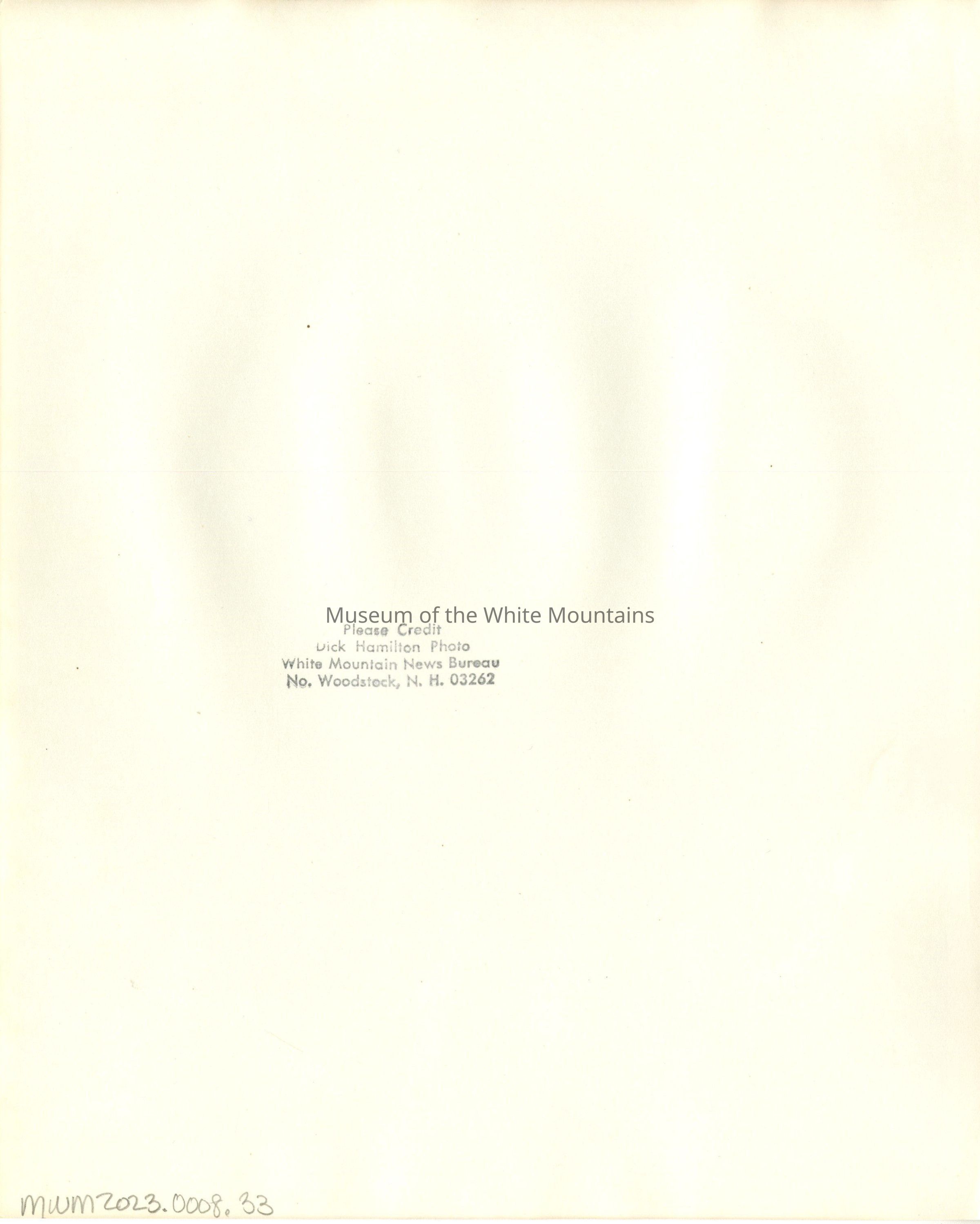 Back description: "Please Credit Dick Hamilton Photo White Mountain News Bureau No. Woodstock, N.H. 03262"Photograph Details
