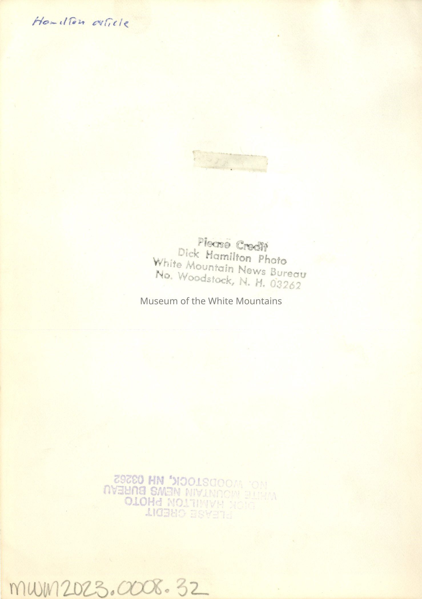 Please Credit Dick Hamilton Photo White Mountain News Bureau No. Woodstock, N.H. 03262 (stamp)Type