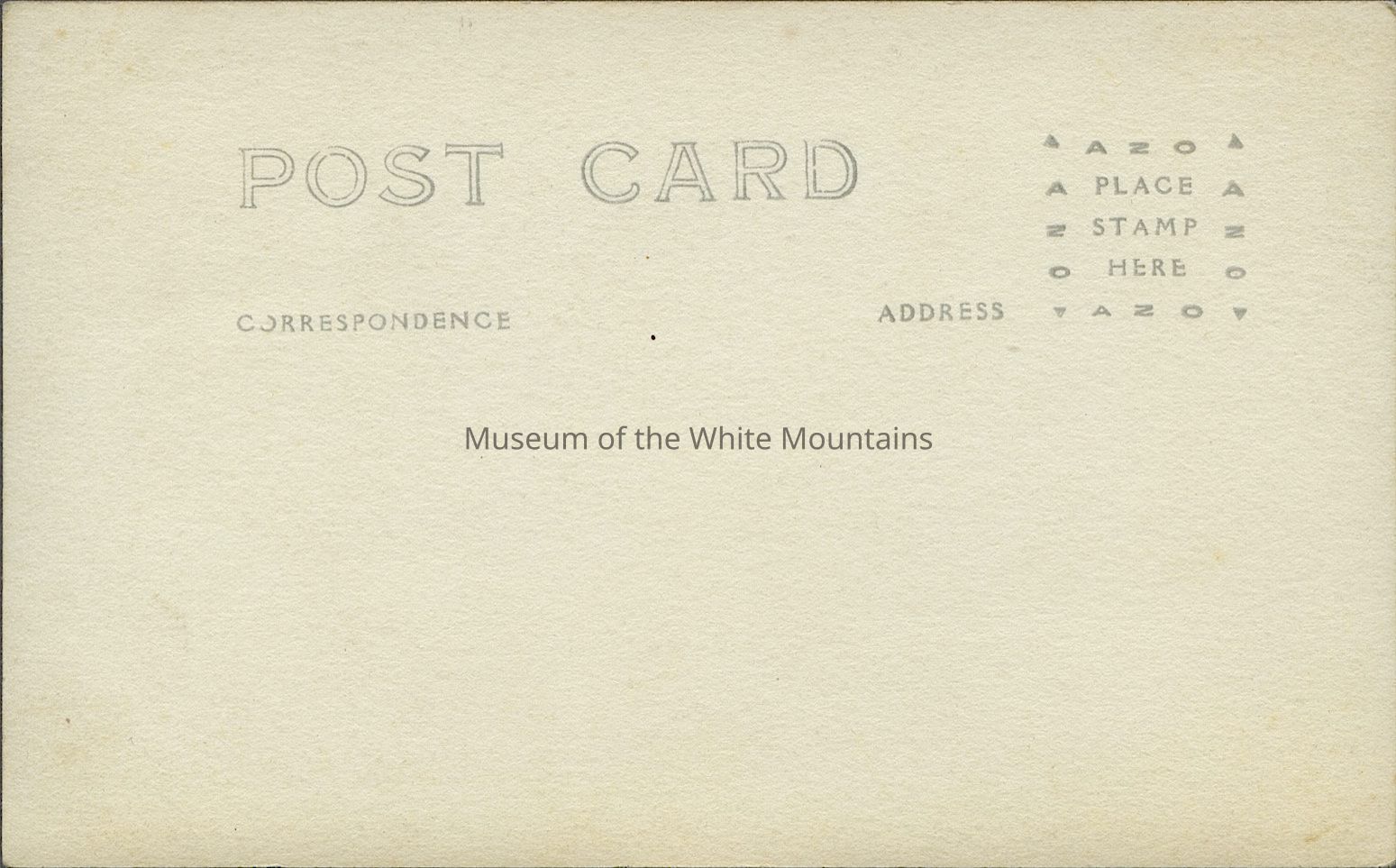 Back Description: Printed on back, "Post card, correspondence, address, place stamp here, azo."Collection
