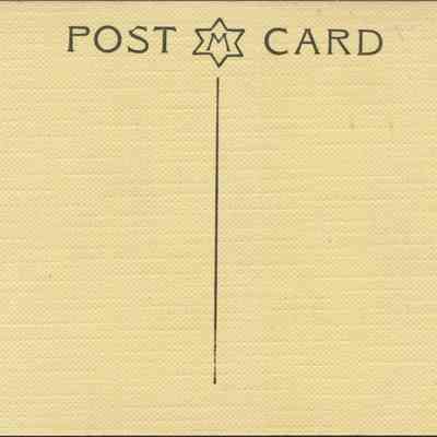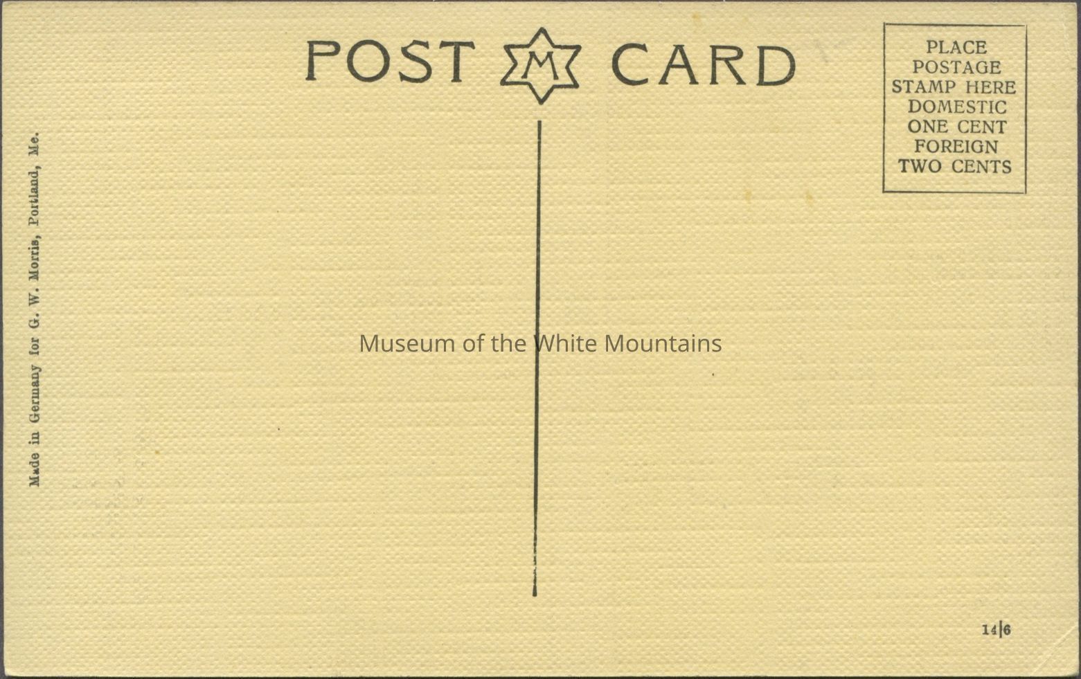 Back Description: Printed on back, “Post Card, Made in Germany for G. W. Morris, Portland, Me., Place postage stamp here domestic one cent foreign two cents.” Features a six-point star with “M” inside.Collection