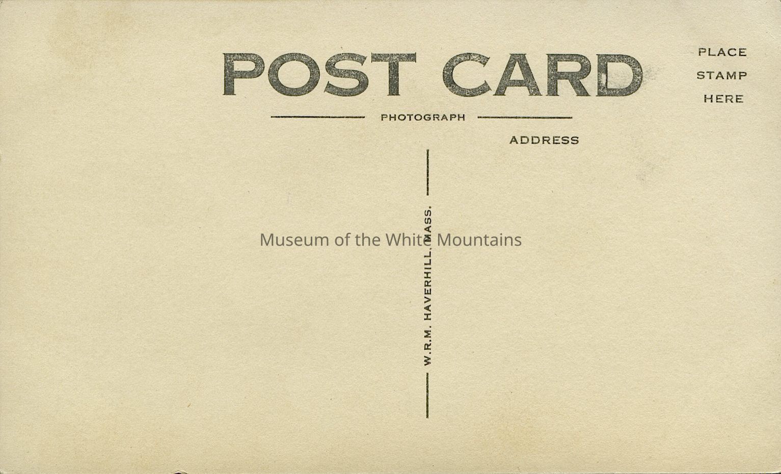 Back Description: Printed on back, “Post Card, photograph, W.R.M. Haverhill, Mass, address, Place stamp here.”Collection