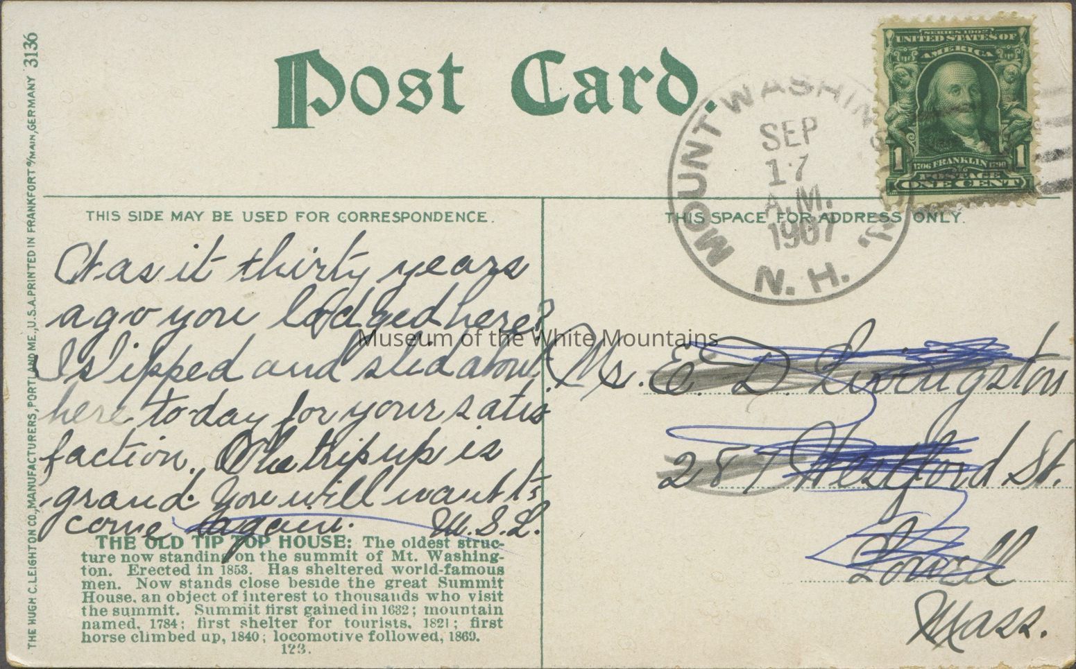 Tip-Top House (Coos county, New Hampshire : inhabited place), Washington, Mount (Coos county, New Hampshire : Mountain), Lowell (Middlesex county, Massachusetts : inhabited place), Postage