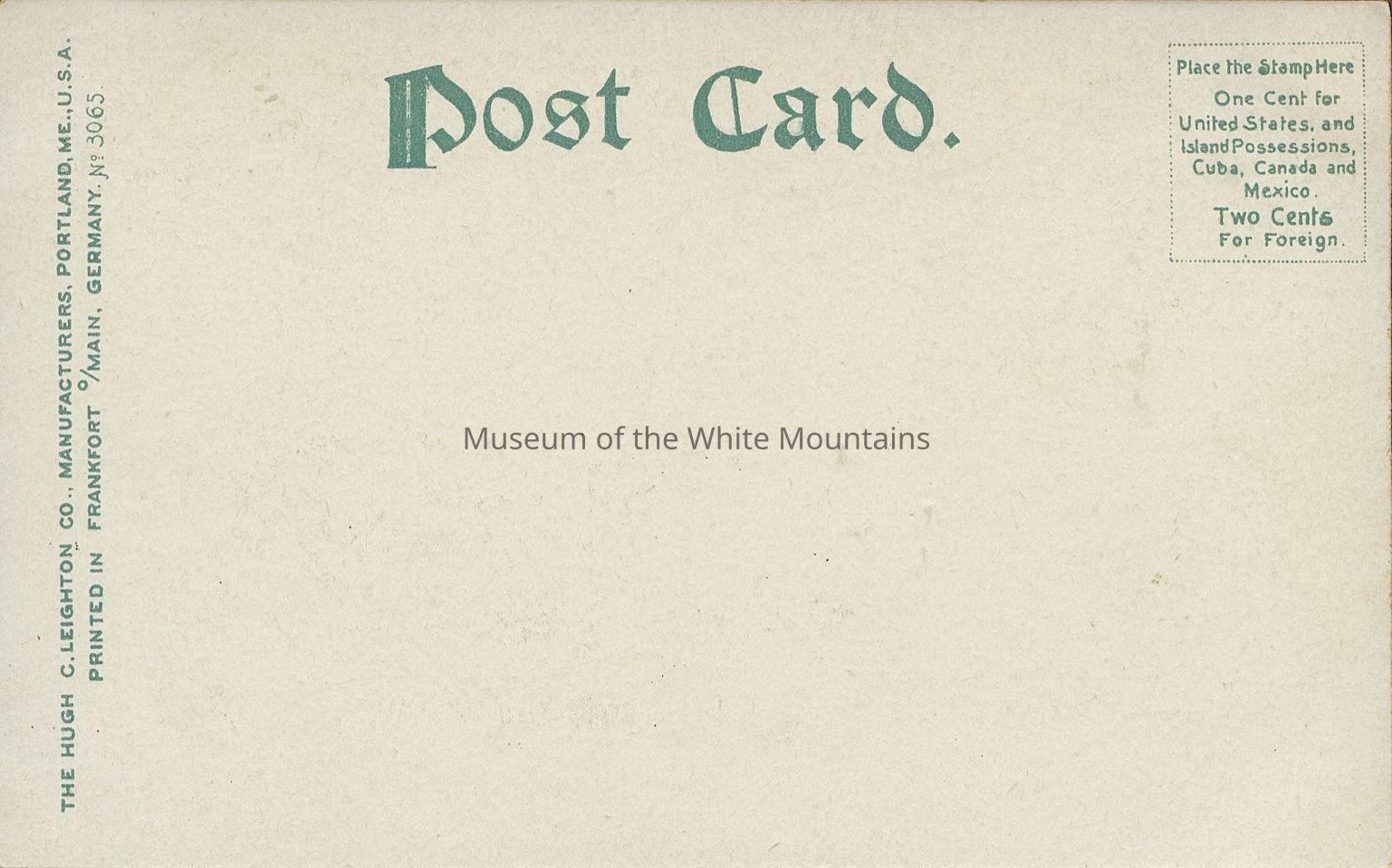 Back Description: Printed on back, “Post card, place the stamp here one cent for United States and island possessions, Cuba, Canada and Mexico, two cents for foreign; The Hugh C. Leighton Co., Manufacturers, Portland, ME, USA, printed in Frankfort o/Main, Germany. no. 303Collection