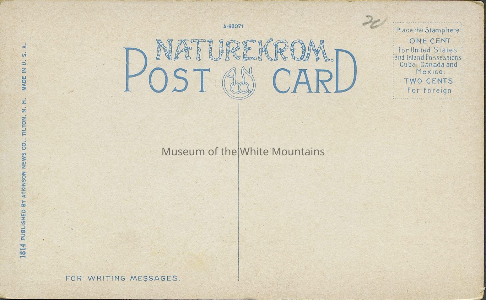 Back Description: Typical postcard back.Collection