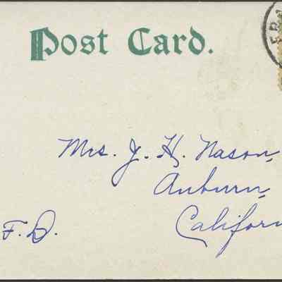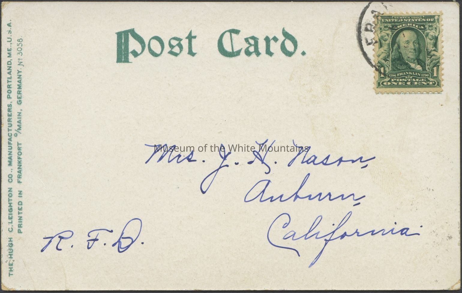 Back Description: Typical postcard back. Includes handwritten note, a postmark, and a postage stamp.