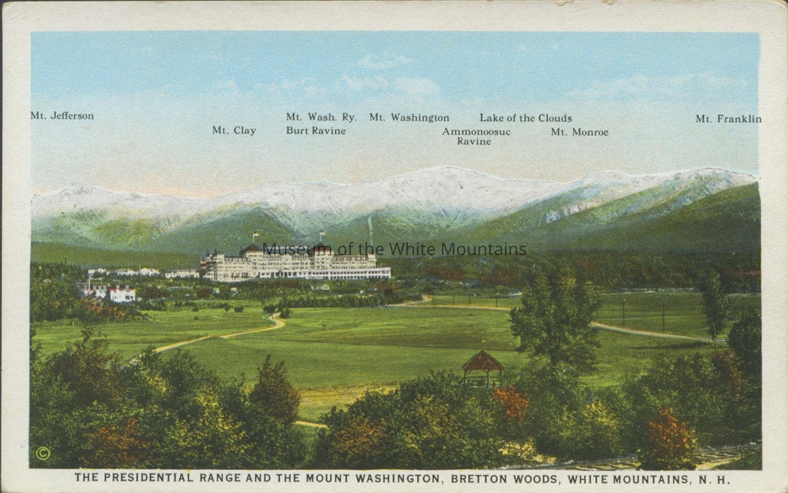 Jefferson, Mount (Coos county, New Hampshire : peak), Clay, Mount (Coos county, New Hampshire : peak), Washington, Mount (Coos county, New Hampshire : mountain), Monroe, Mount (Coos county, New Hampshire : peak), Franklin, Mount (Coos county, New Hampshire : peak), Ammonoosuc River (Coos county, Grafton county, New Hampshire : river), Lakes of the Clouds (Coos county, New Hampshire : lake), Bretton Woods (Coos county, New Hampshire : inhabited place), Mount Washington Hotel (Coos county, New Hampshire : inhabited place), Presidential Range (Coos county, New Hampshire : ridge)