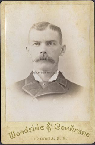 On the front under the portrait of the young man in gold letter is printed, "Woodside & Cochrane, Laconia, N.H."