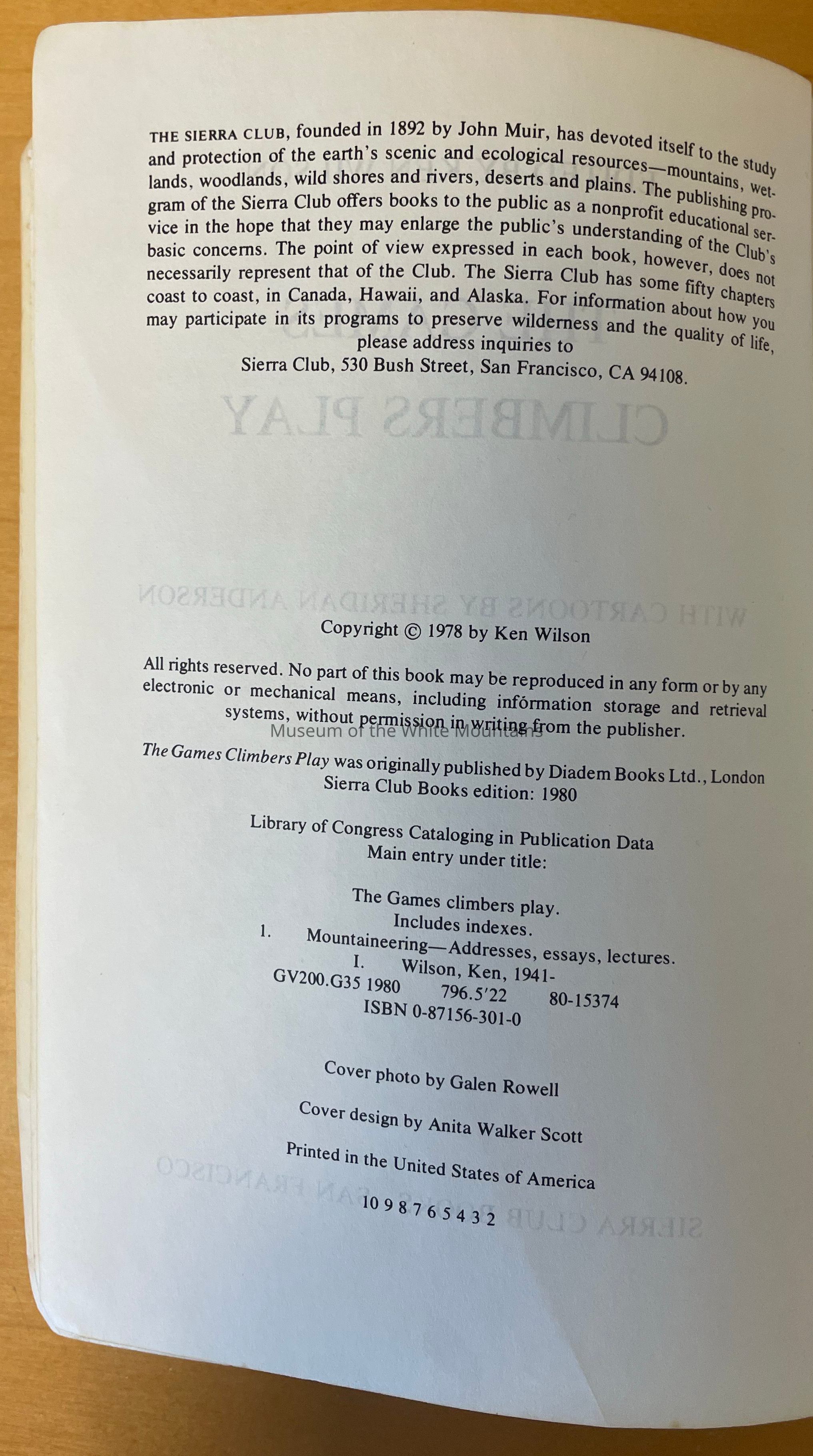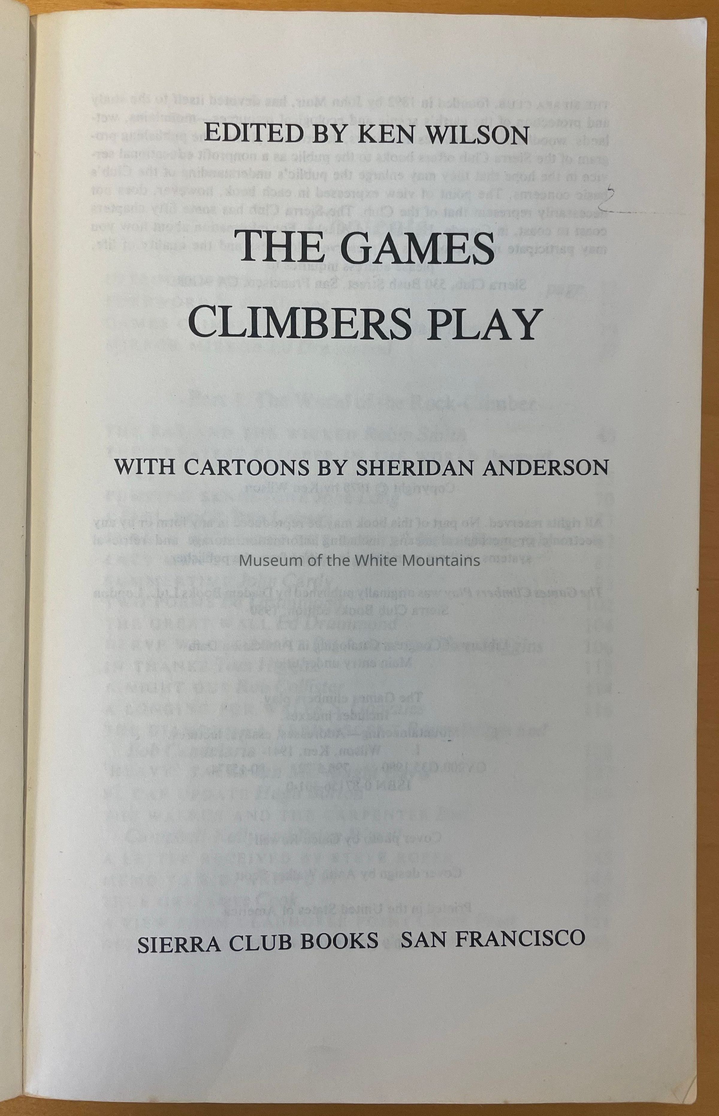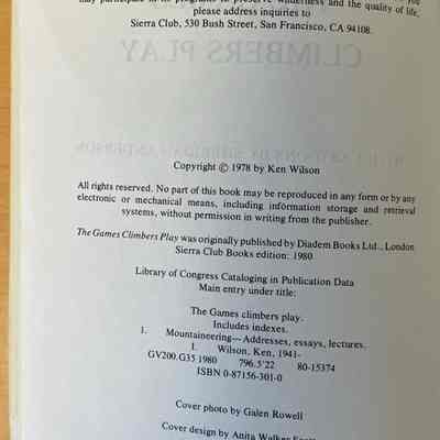 This is a book of compiled stories written about and by rock climbers describing their experiences with the sport. Many of these stories are intended as humor while also reflecting many of the challenges with expeditions, ethical decisions, dangers of climbing, rescue missions, and education on outdoor sports.Collection