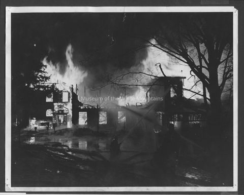 Snow, Trees, Buildings, Night, People, Fires, Smoke, Hoses, WaterSearch Terms