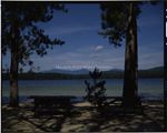 Clouds, Shadows, Trees, Shorelines, Forests, Picnic grounds, Sand, Picnics, Beaches, Pine trees, Mountains, WaterSearch Terms